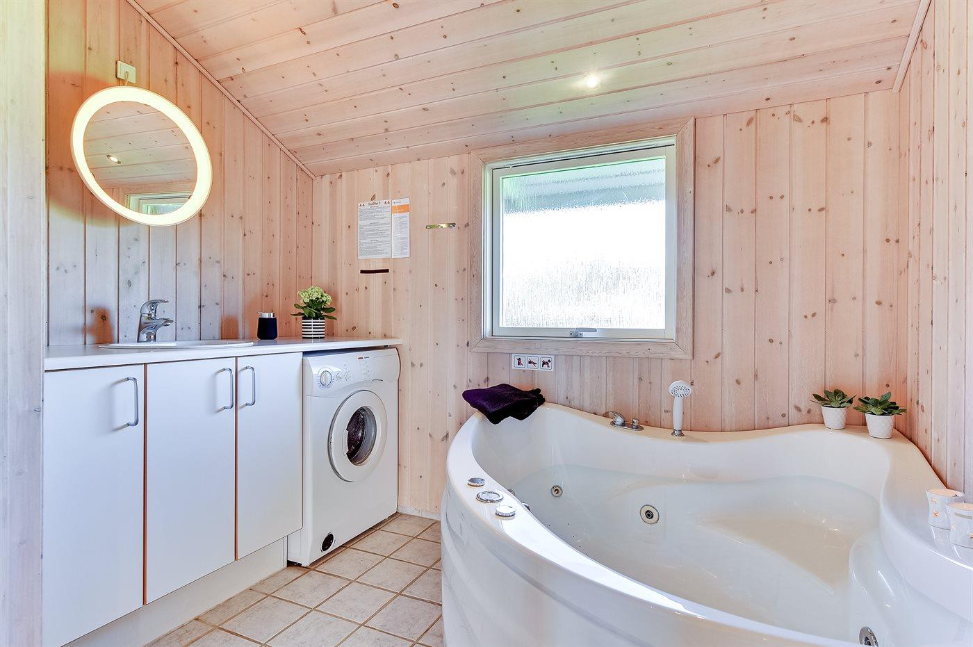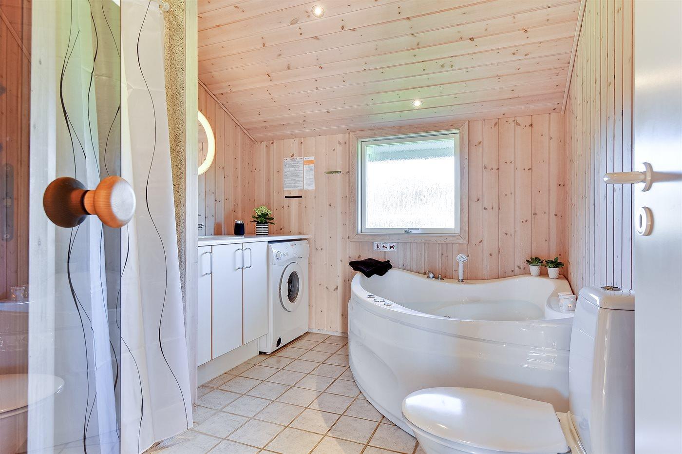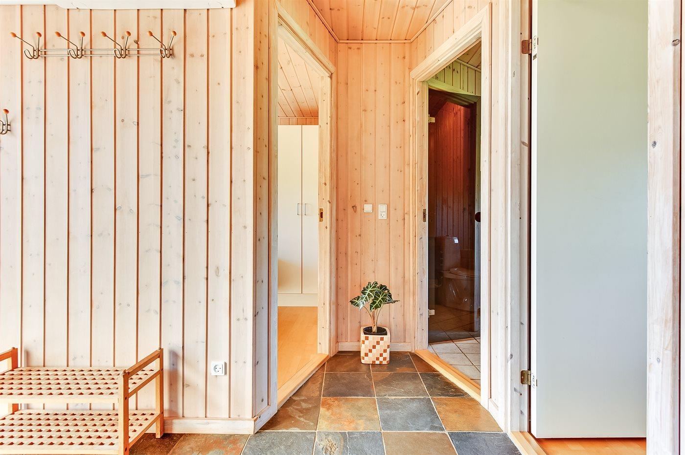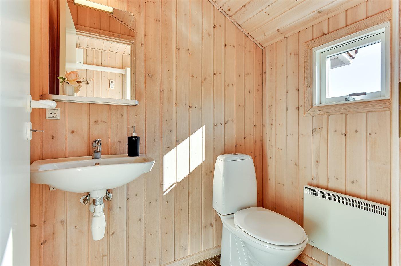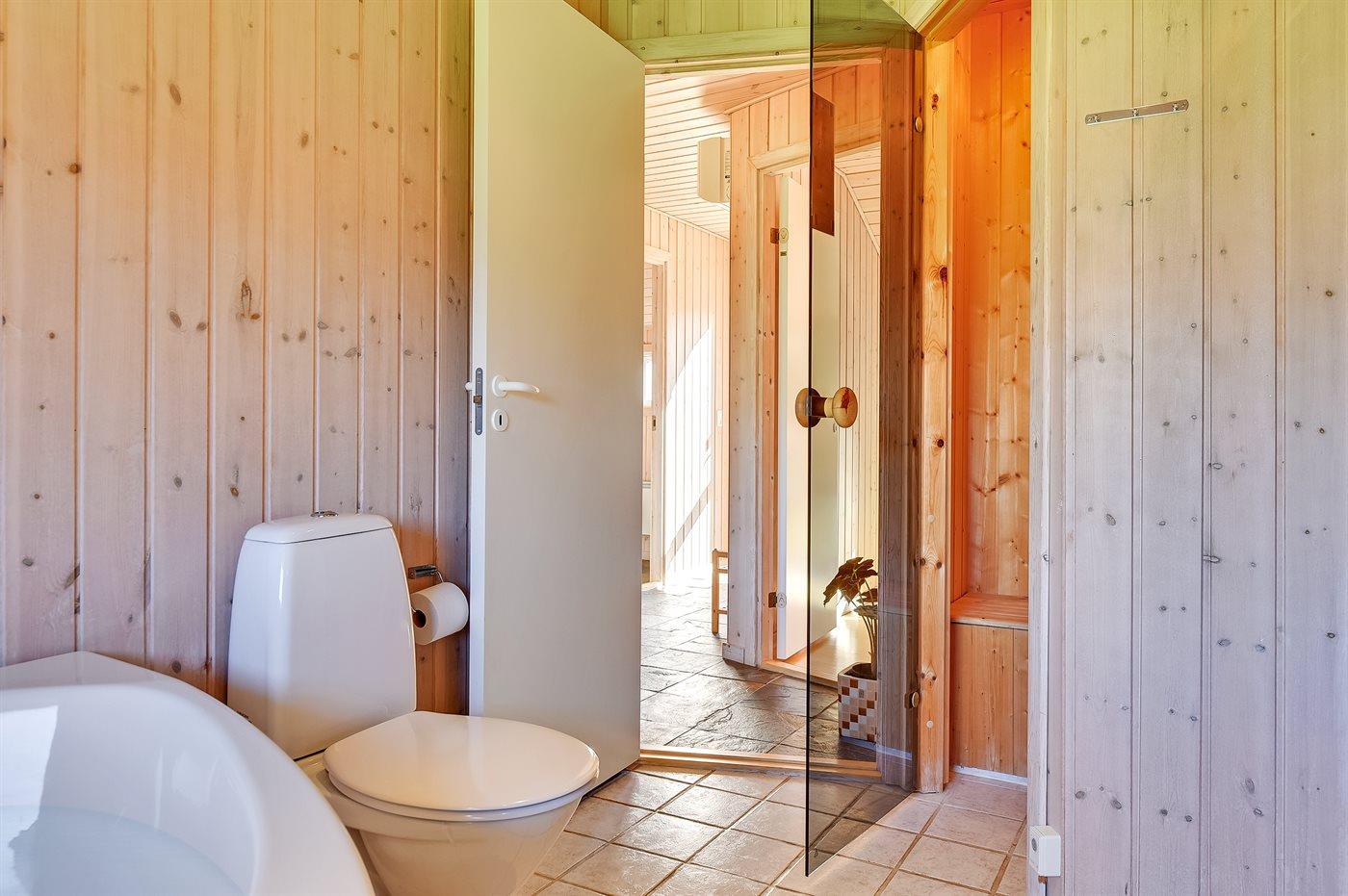 Der er 1 badeværelse med bruseniche og 2 toiletter, heraf 1 gæstetoilet. Der er gulvvarme på 1 badeværelse. I saunaen er der mulighed for afslapning.