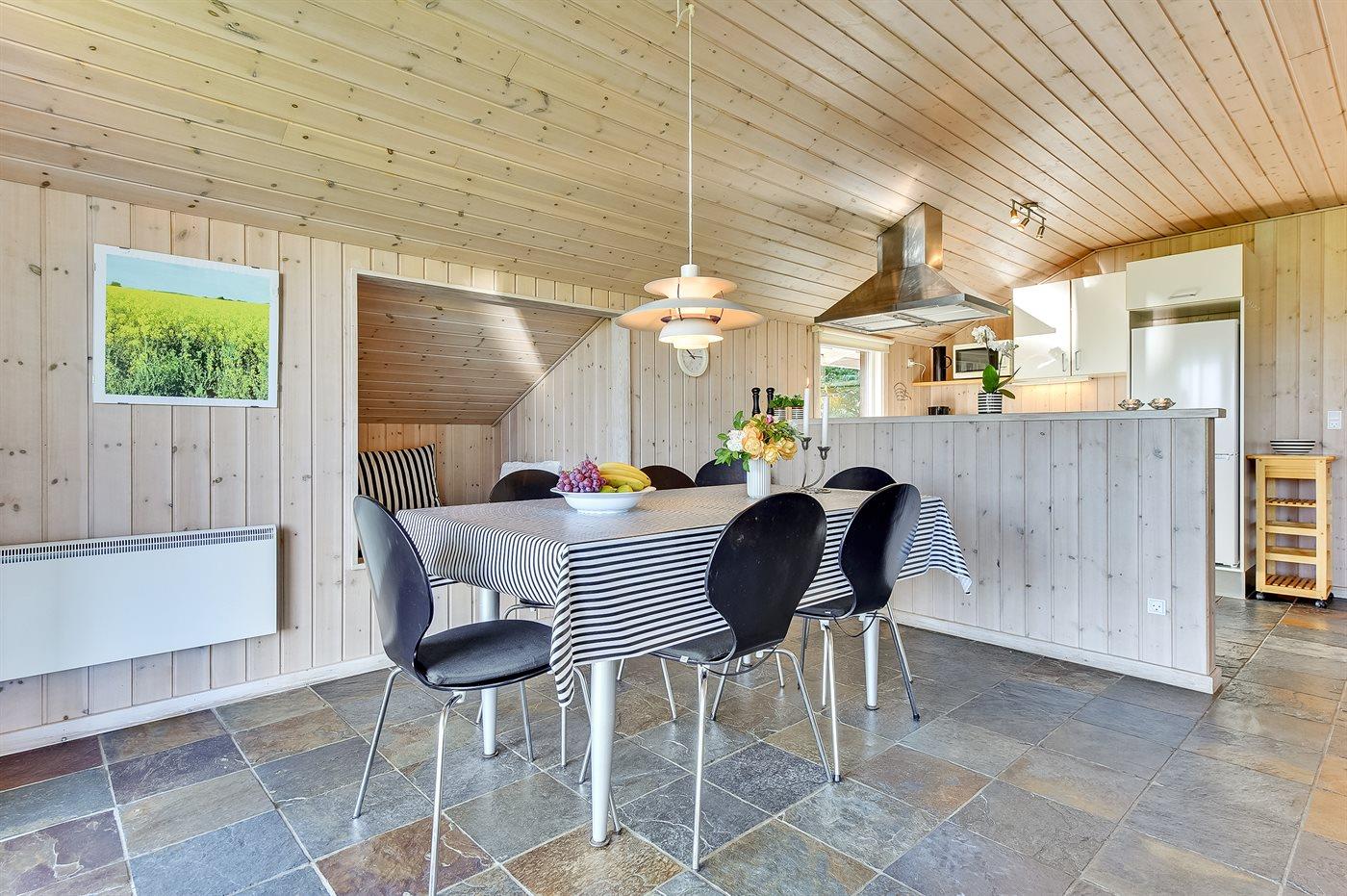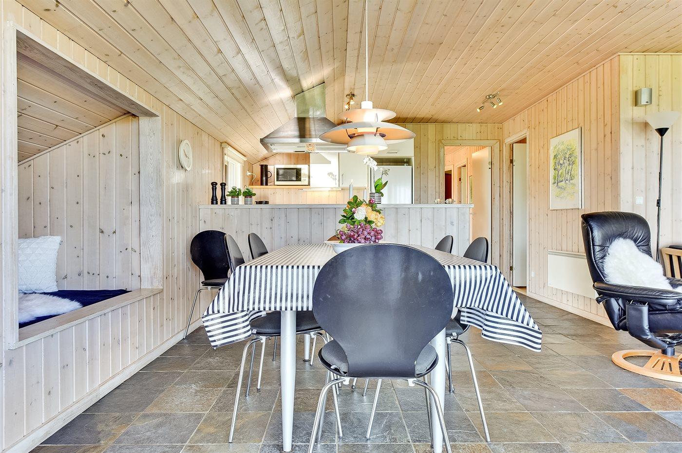 Sommerhuset egner sig til 8 personer. Ferieboligen er på 92 m² og er bygget i 2004. Det er tilladt at medbringe 2 husdyr. Ferieboligen er udstyret med energibesparende varmepumpe. Ferieboligen har vaskemaskine. Frysekapacitet på 64 liter. Der er desuden brændeovn. Til de små er der 1 stk. barnestol.