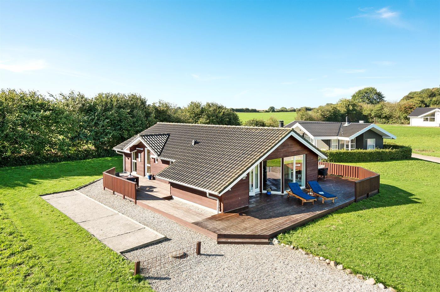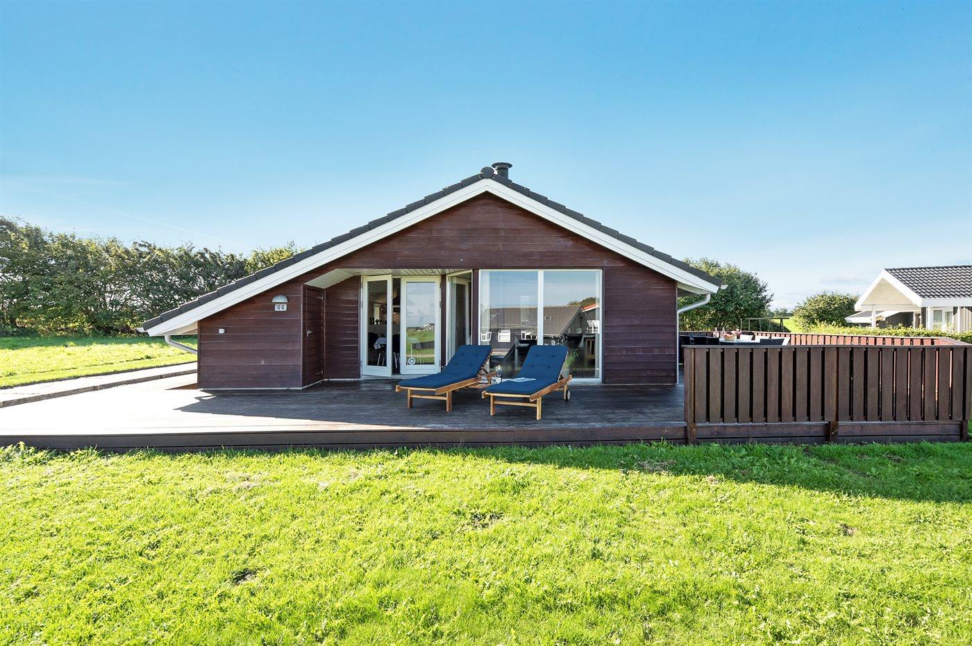 Rummeligt sommerhus med havudsigt, spa og stor terrasse tæt på vandet i naturskønt område.