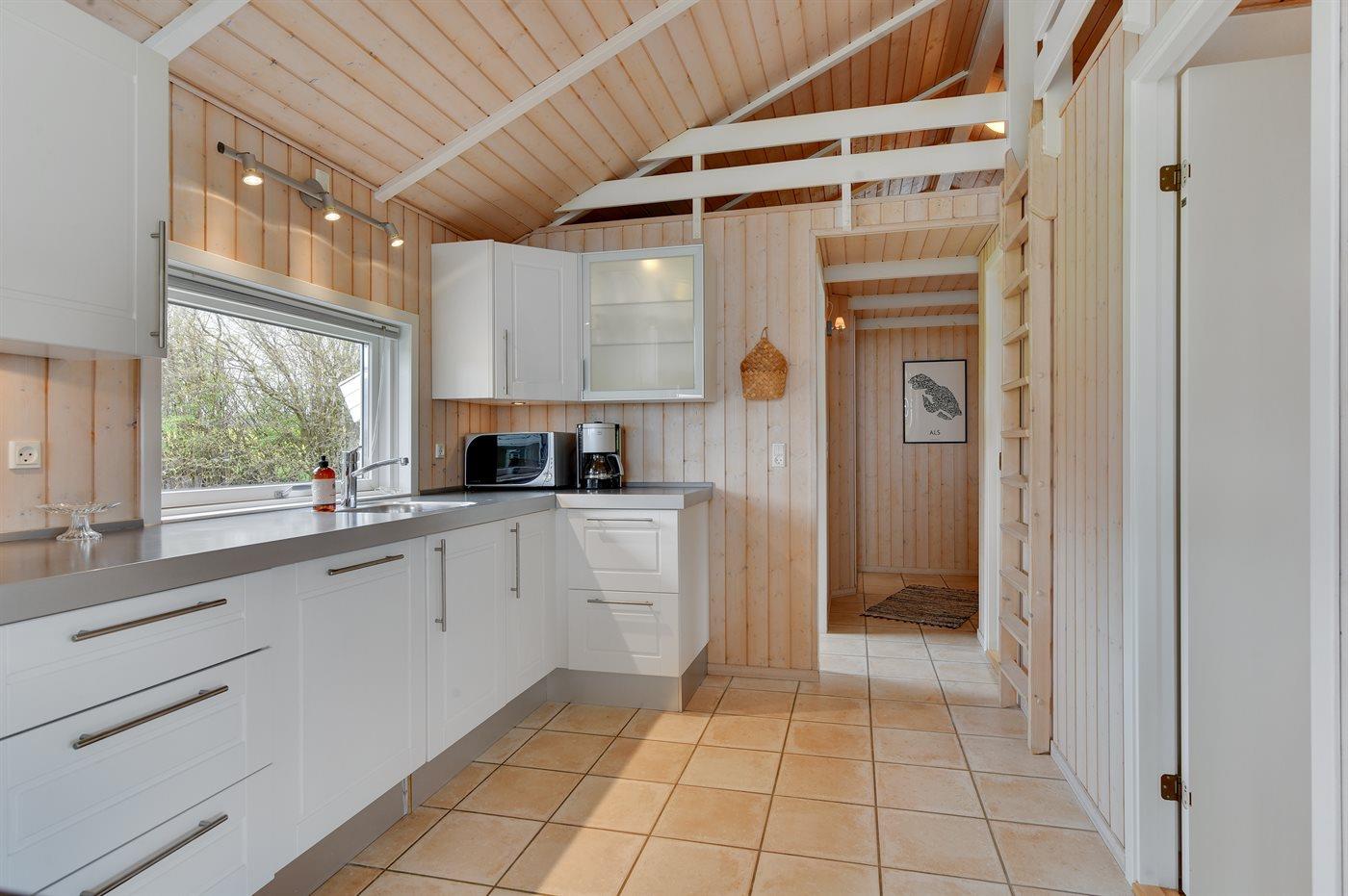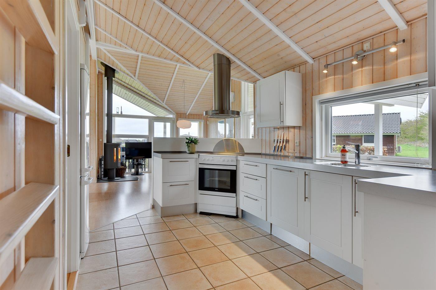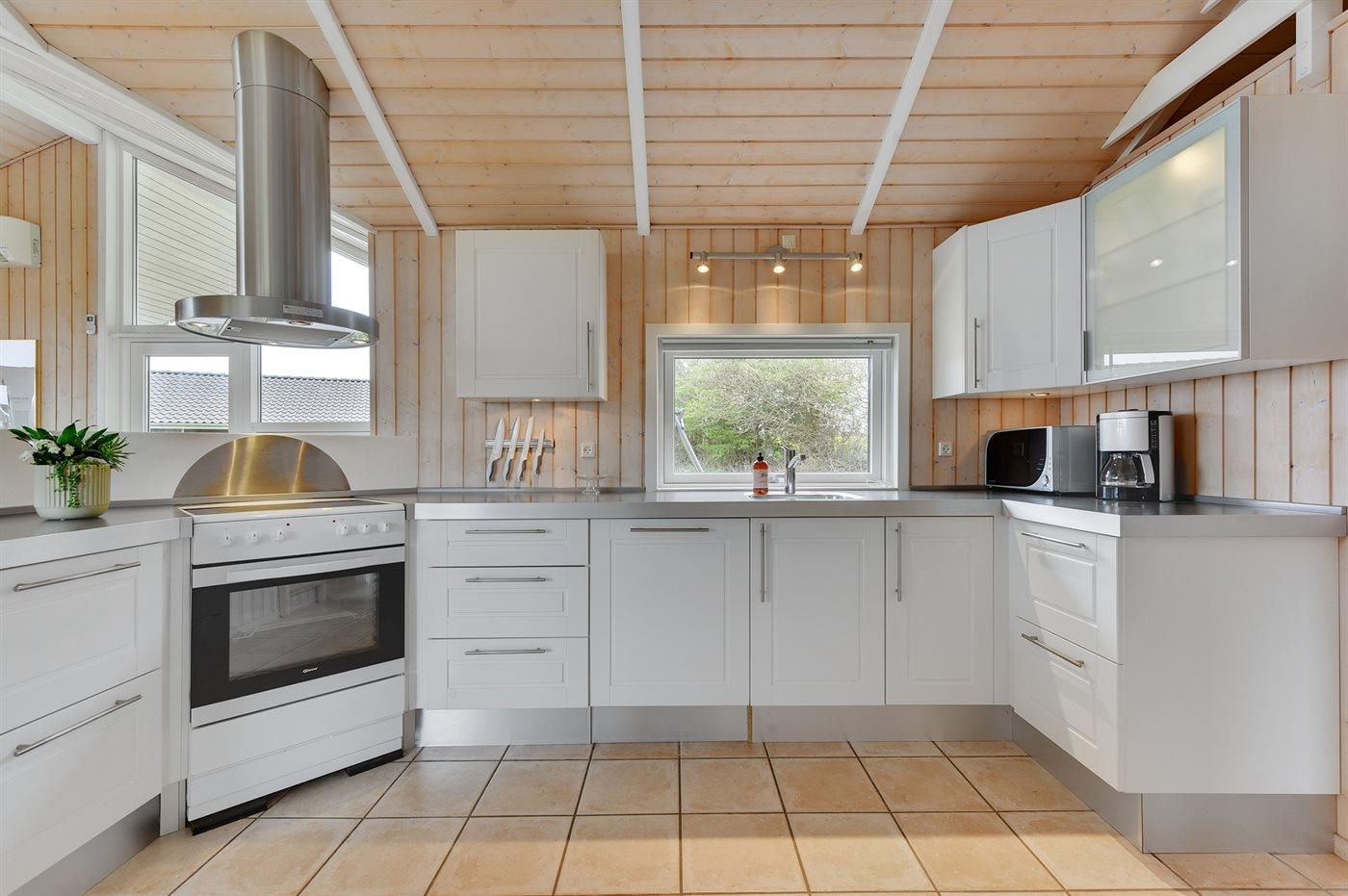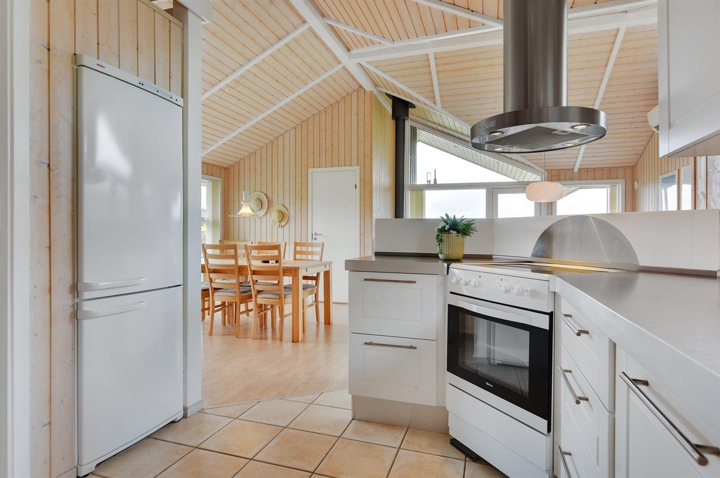 Køkkenet er udstyret med 1 køleskab. Der er 4 keramiske kogeplader, varmluftovn, mikrobølgeovn samt opvaskemaskine.