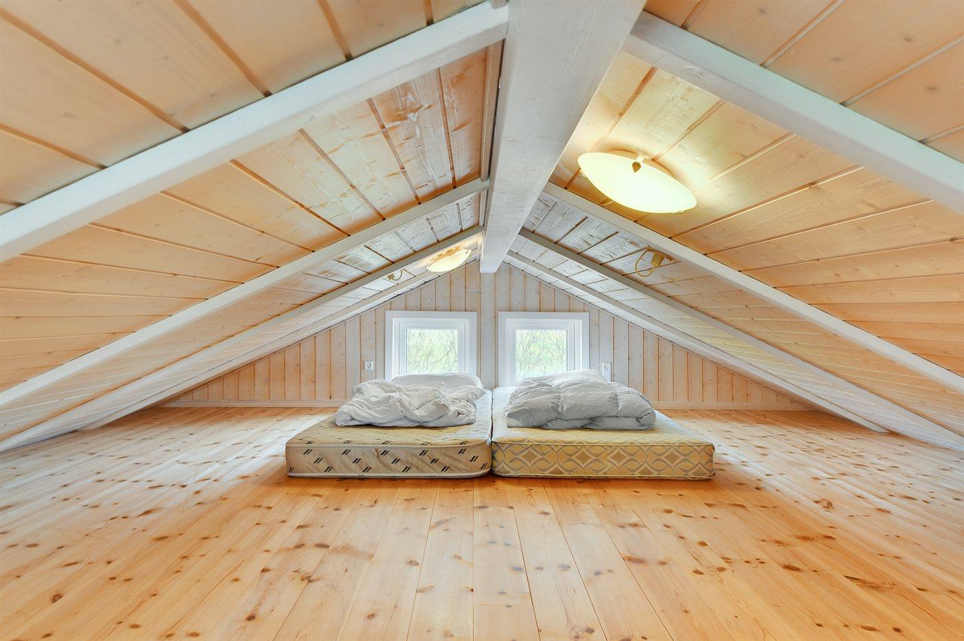 Der er i alt 3 soveværelser. Sovepladserne fordeler sig på: 6 sovepladser i enkeltsenge. 2 sovepladser på madrasser. 2 af disse sovepladser befinder sig på husets hems. Derudover er der 1 stk. barneseng.