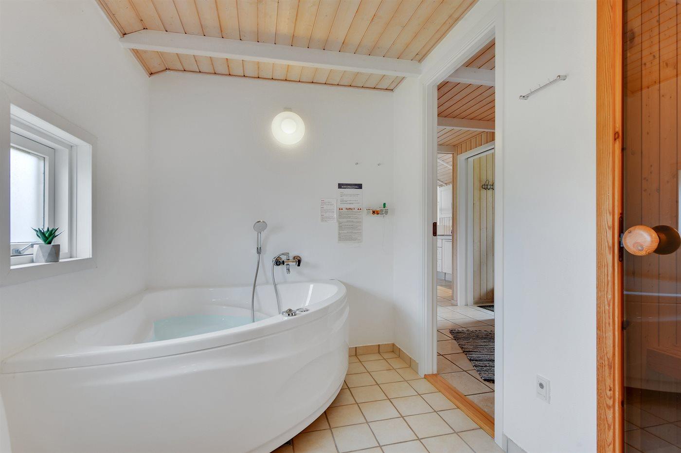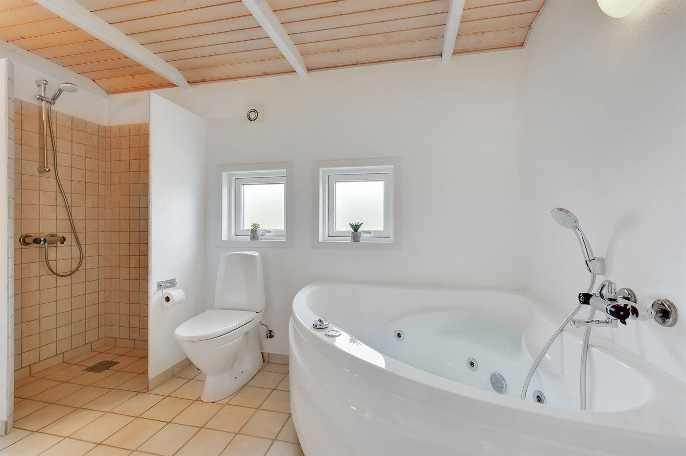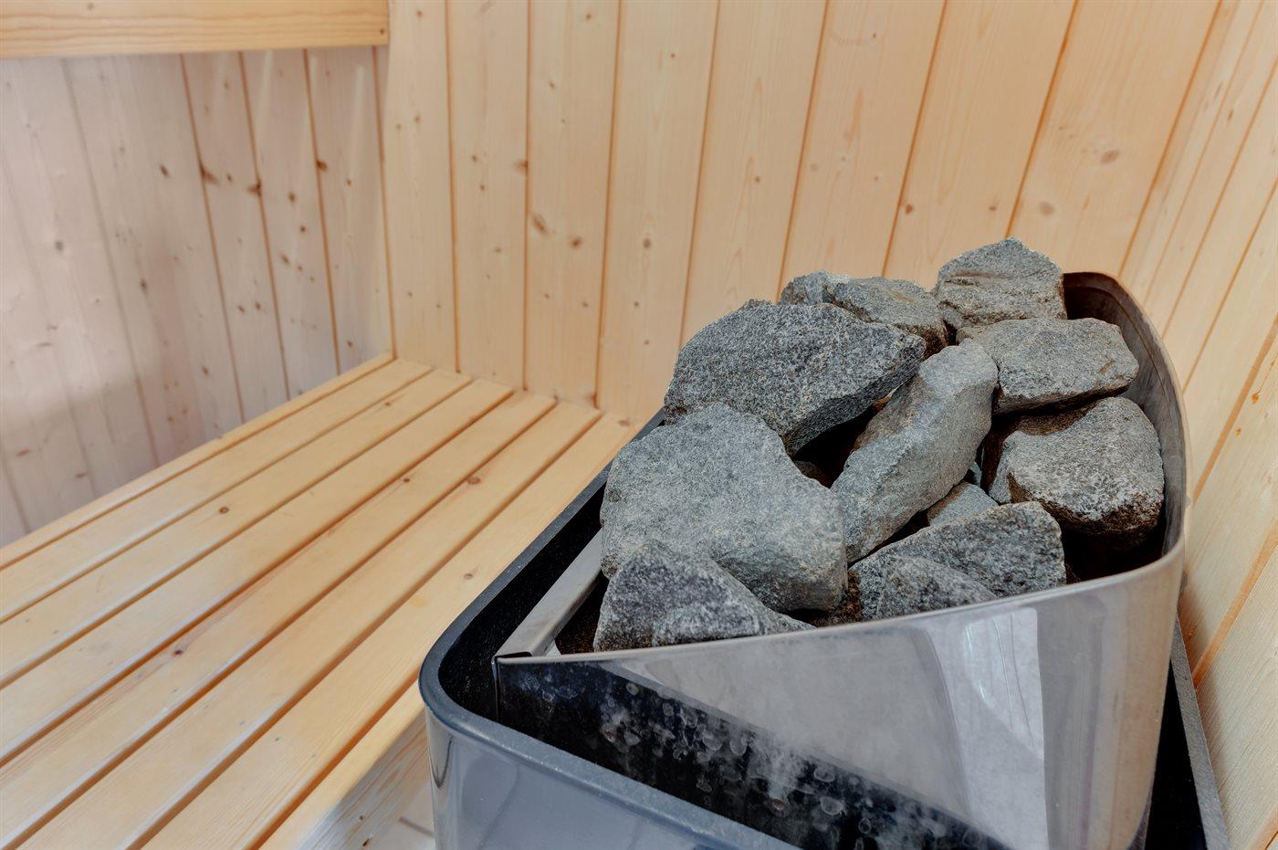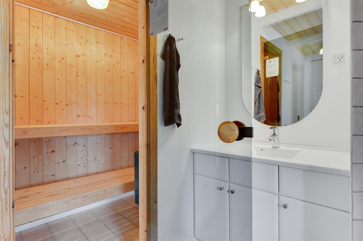 Der er 2 badeværelser med bruseniche og 2 toiletter. Der er gulvvarme på 2 badeværelser. I saunaen er der mulighed for afslapning.