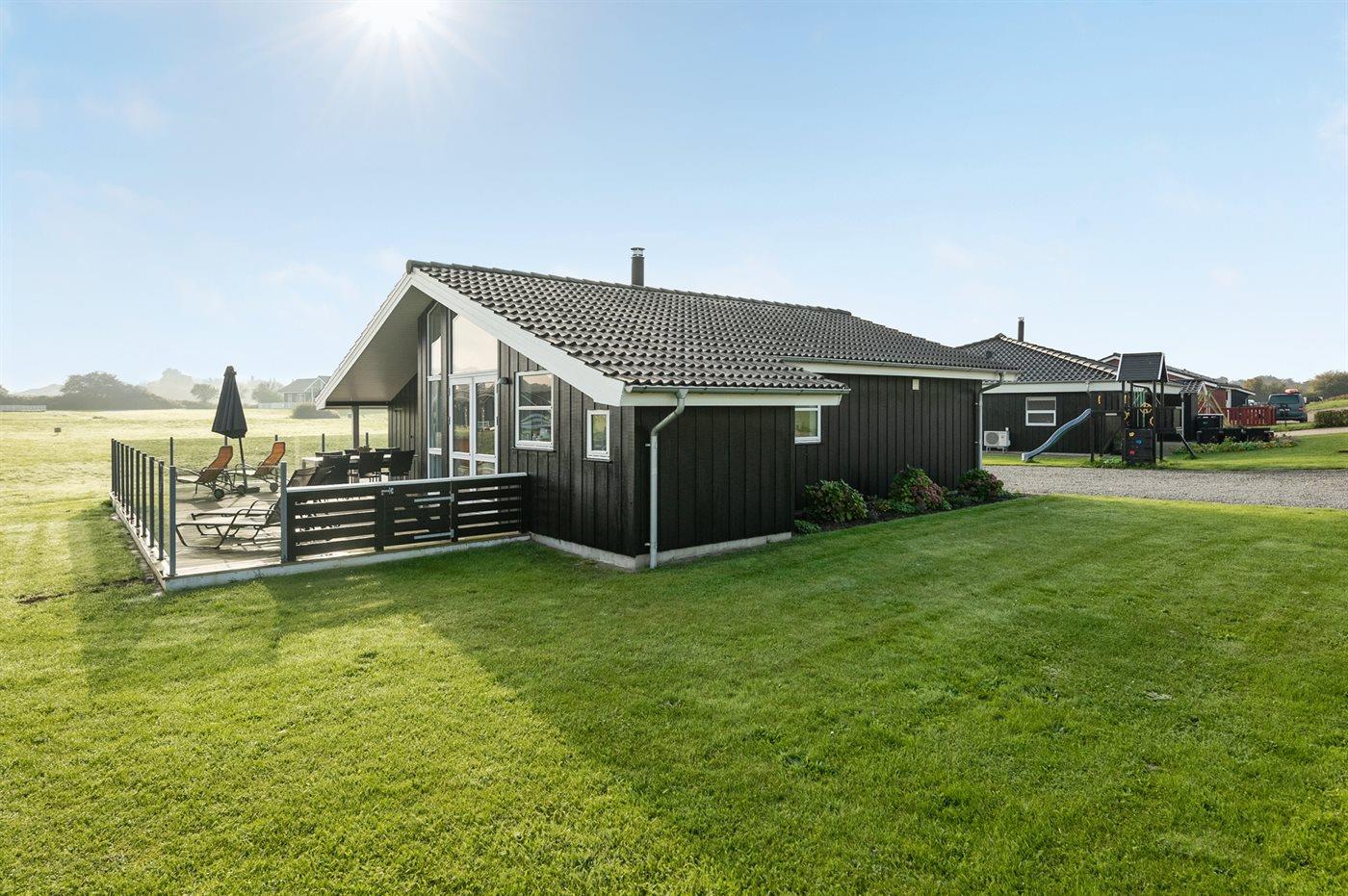 Ferieboligen er beliggende på en 820 m² stor naturgrund. Der er 200 m til havet. Nærmeste forretning er beliggende i en afstand af 3000 m. Der er en golfbane i en afstand af 4000 m. Til ferieboligen hører 100 m² terrasseareal. Heraf i alt 100 m² lukket terrasse. Gynge. Sandkasse. Legetårn. Rutchebane. Grill til rådighed. Parkering ved ferieboligen.