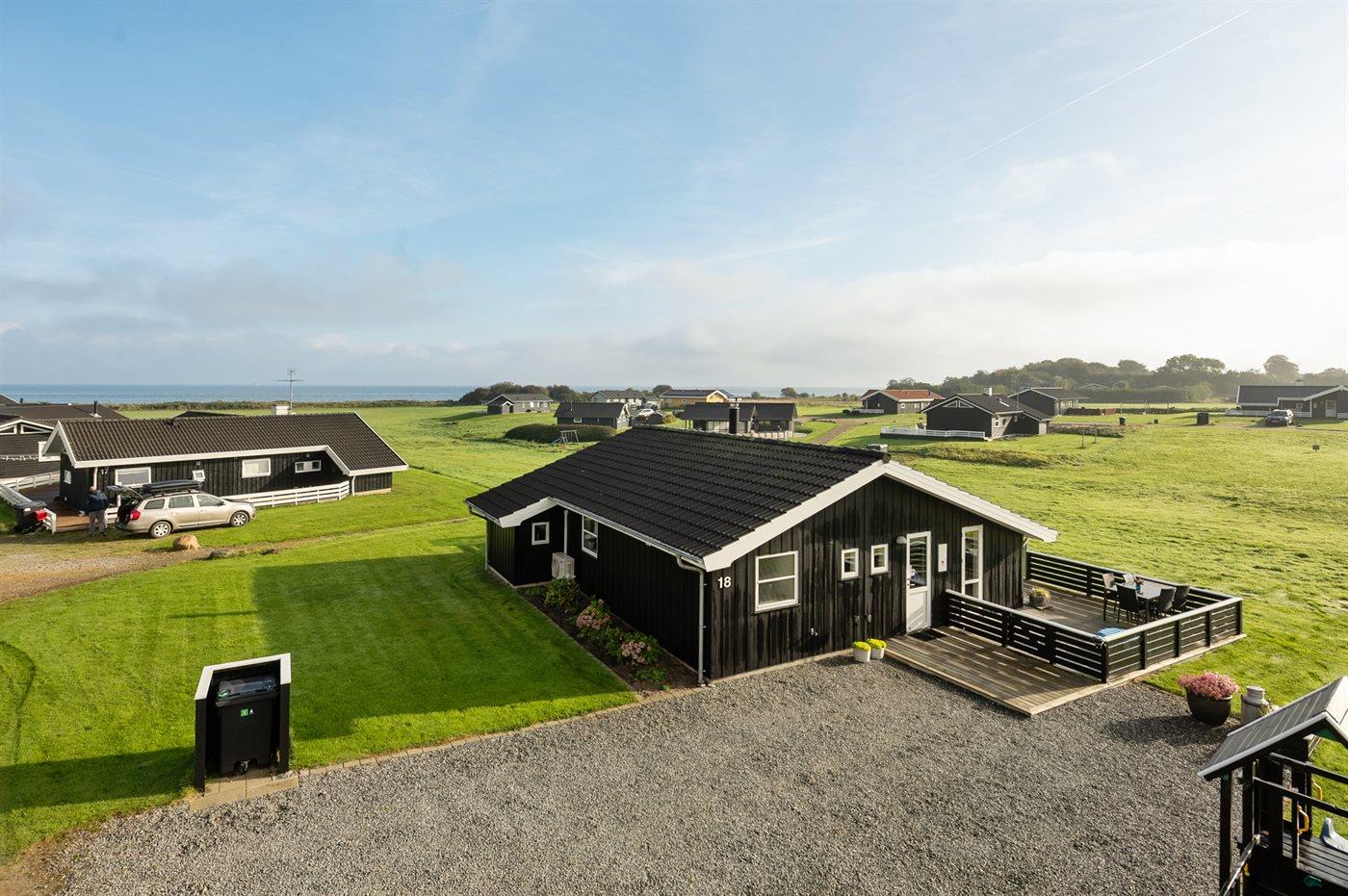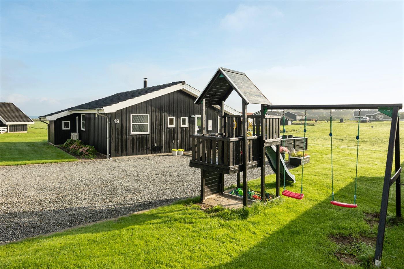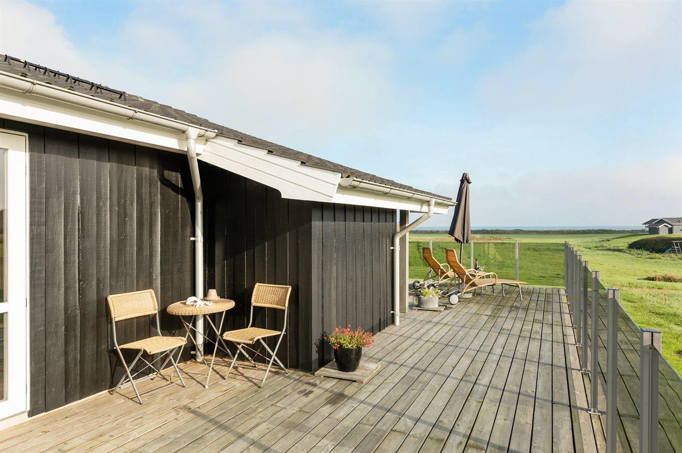 Et dejligt beliggende sommerhus - tæt på strand og vand med udsigt over havet fra såvel hus som grund. Der findes fælles legetårn med nabohuset.