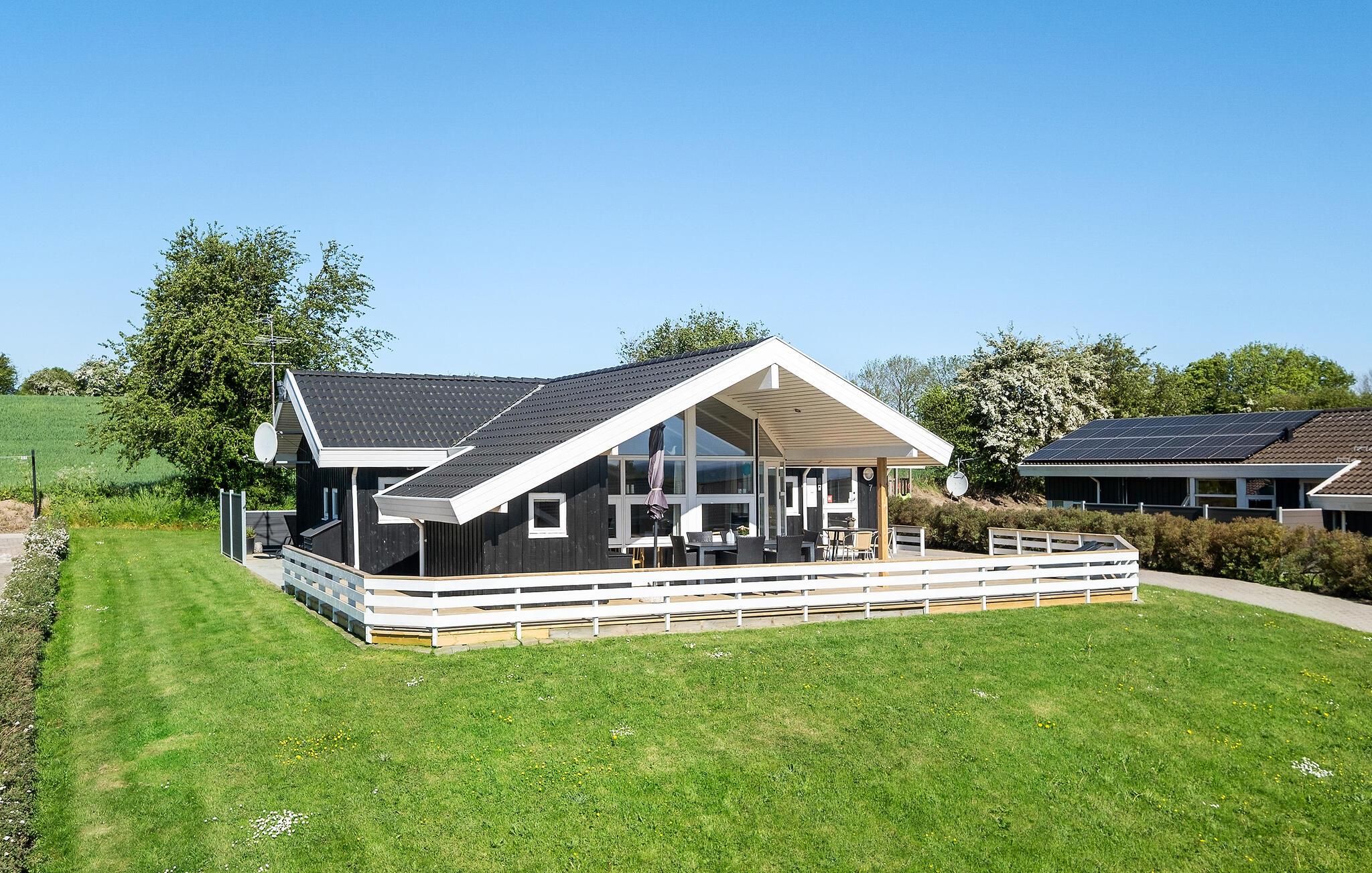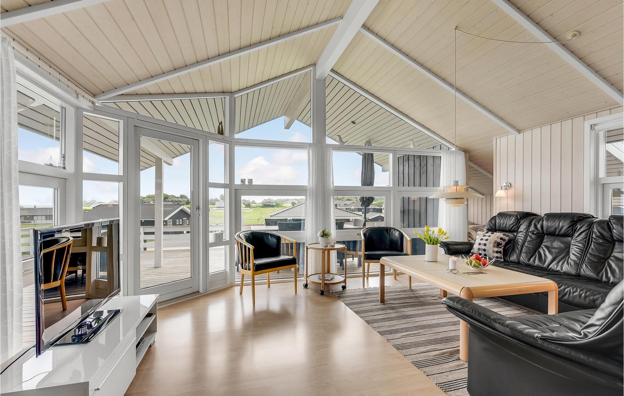 Hyggeligt feriehus ved Lavensby Strand med sauna, spa og panoramaudsigt over vandet.