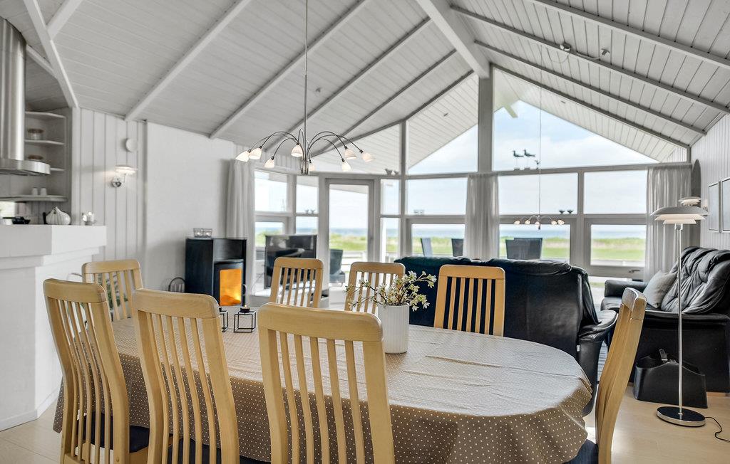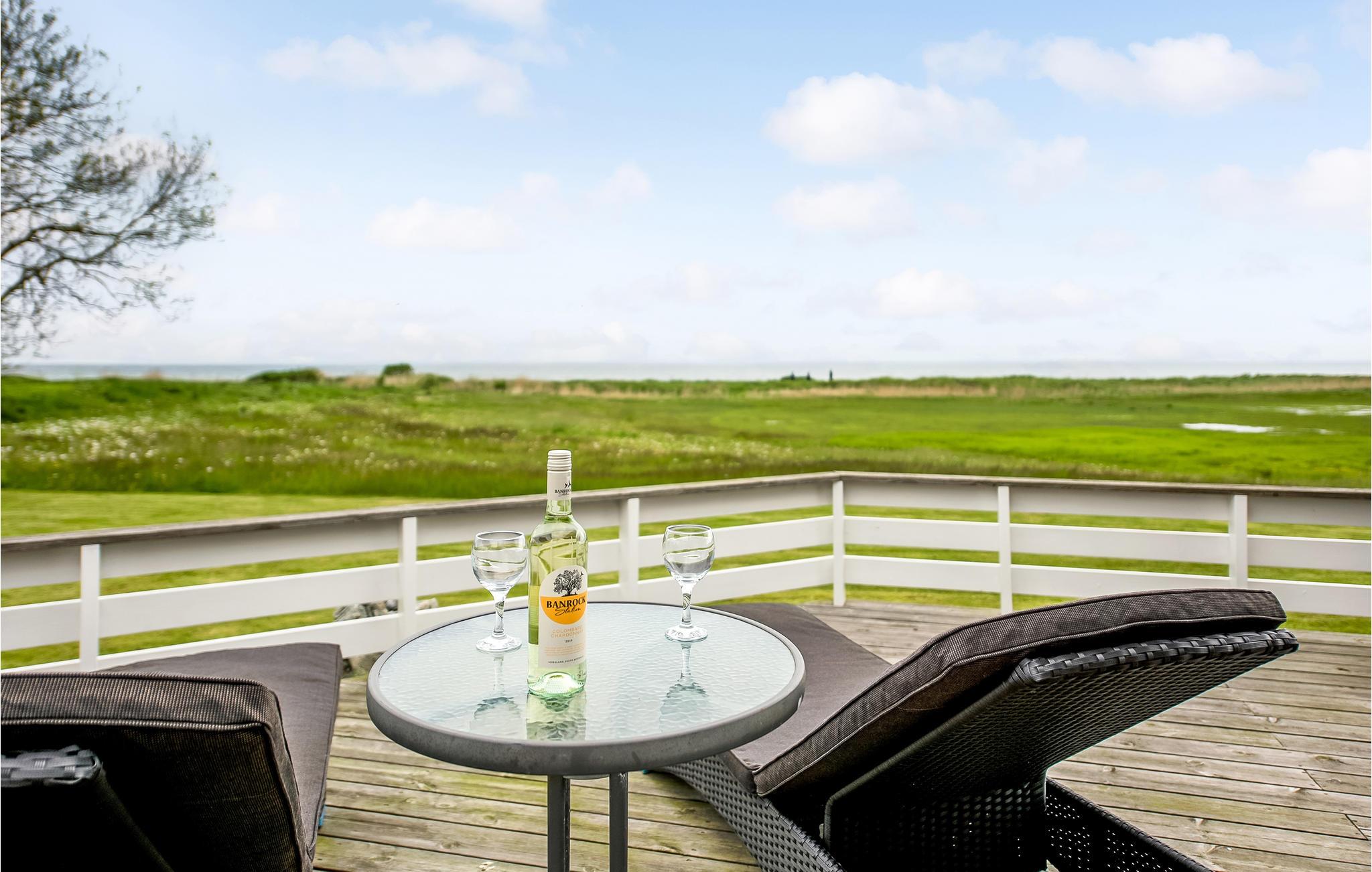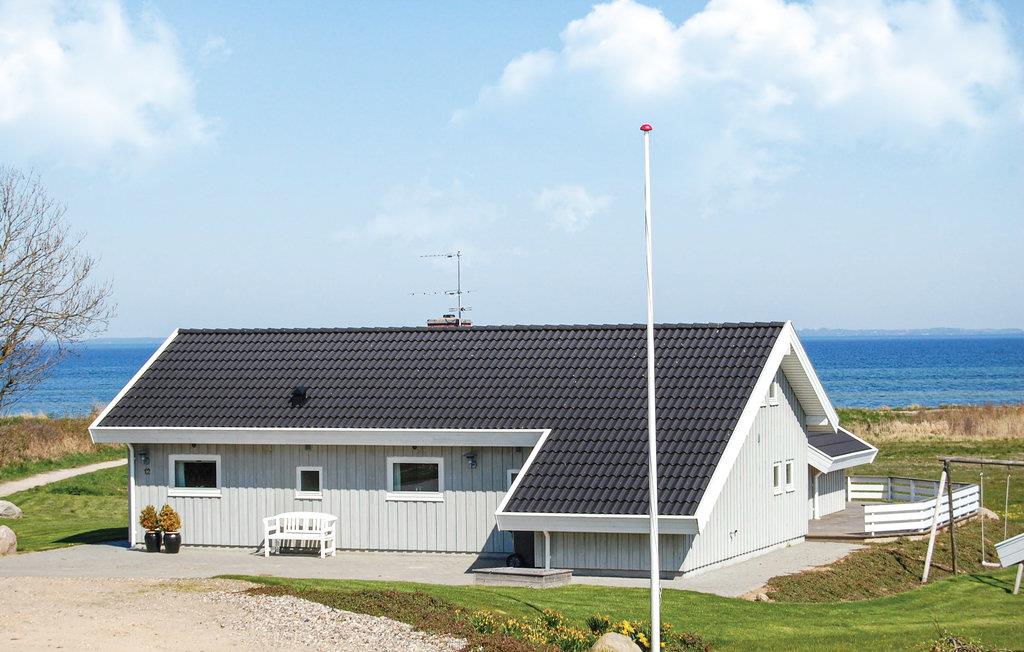 Dette lækre feriehus ligger i første række til stranden, i et naturskønt og roligt feriehusområde. Fra stuen og terrassen har I en fin udsigt over vandet, så på kølige dage kan I sidde i sofaerne foran brændeovnen og kigge ud på bølgerne. Det fine køkken er udstyret med alle ønskelige faciliteter og i tæt tilknytning står spisebordet, hvor I naturligvis kan spise sammen men også spille kort og brætspil om aftenen efter en skøn dag med oplevelser ude i den smukke natur. I huset findes tre gode soveværelser samt en alkove i forbindelse med stuen. Endvidere to badeværelser, hvor det ene indeholder både spabad og sauna. Der er terrassearealer hele vejen rundt om huset, så I har altid mulighed for at sidde i enten sol eller skygge, alt efter hvad I har lyst til. I den store have er der plads til boldspil og leg, og det er oplagt, at gå ned til vandet for enden af grunden og nyde en stille aften, mens I går langs vandet.