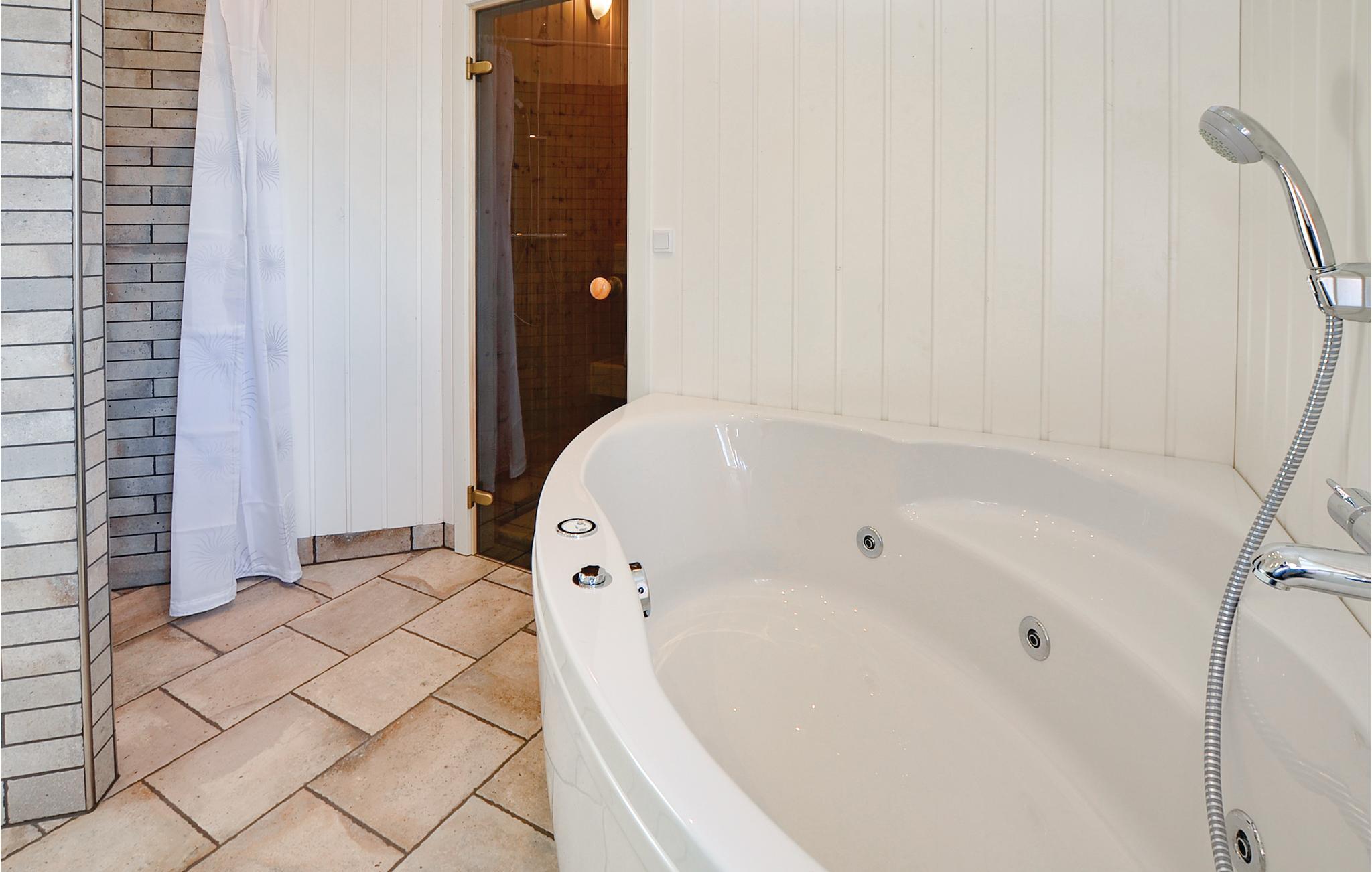 Dette luksusferiehus ligger i første række fra stranden, i et naturskønt feriehusområde. Det er opført i eksklusive materialer med en konstrukton, der får det til at fremstå lyst og venligt. Indendørs er der en åben funktionel køkkenafdeling med alle ønskelige faciliteter som ligger i forbindelse med spiseafdelingen og opholdsstuen. I stuen er der både en brændeovn og en energivenlig varmepumpe, som I kan benytte på de kølige dage og aftener. Der er en dejlig badeafdeling med både spabad og sauna og yderligere et badeværelse med bruser. Ikke langt fra huset ligger oplevelsesparken Universe, hvorfor både små og store gæster kan blive klogere på videnskab og teknologi. Dette hus byder på en god familieferie året rundt!