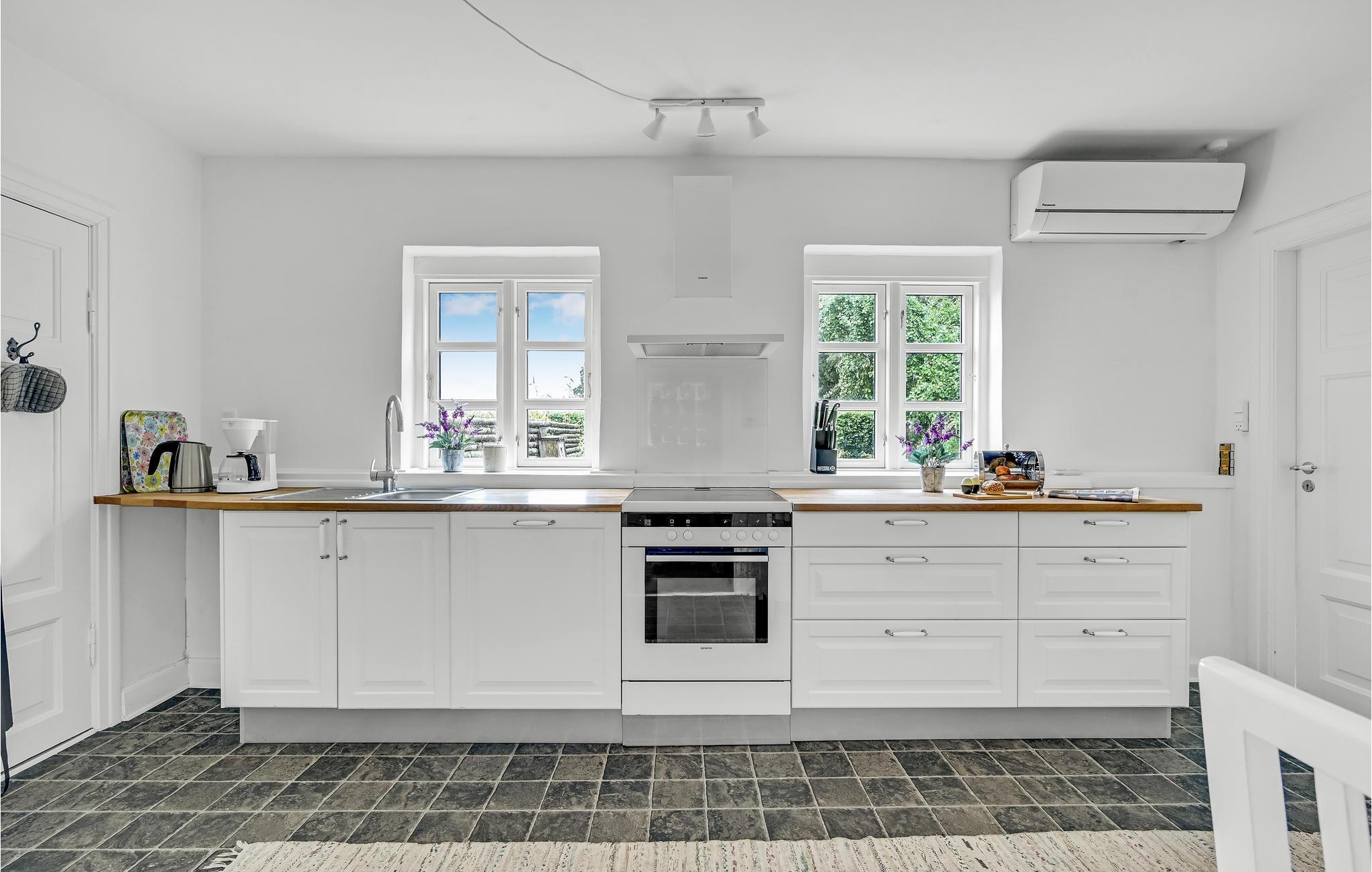 Hyggeligt feriehus ved landevejen på Nordlangeland, godt 1,8 km til Tranekær Slot og Slotspark med sine Landart-skulpturer, der er lavet af både danske og udenlandske kunstnere. Fra den store naturgrund kan man ofte se dådyr på marken ved siden af, som også grænser op til en skov. Selve huset er lyst og venligst indrettet, med faste tæpper, bortset fra i køkken, bryggers og på badeværelset. På Langeland finder man dejlige børnevenlige strande med blåt badevand, klar til hele familiens strandaktiviteter. Den meget smukke natur er berømt for sin skønhed og indbyder til lange vandre- og cykelture. Gode fiskemuligheder både fra kysterne, på havet og i Put and Take søer i hele området. Tag evt. med på et krydstogt på et af de gamle træskibe i det Sydfynske Øhav, sejlturene varer fra 2-6 timer. Besøg også den charmerende by Rudkøbing by med maleriske bygninger, torve og små stræder med.