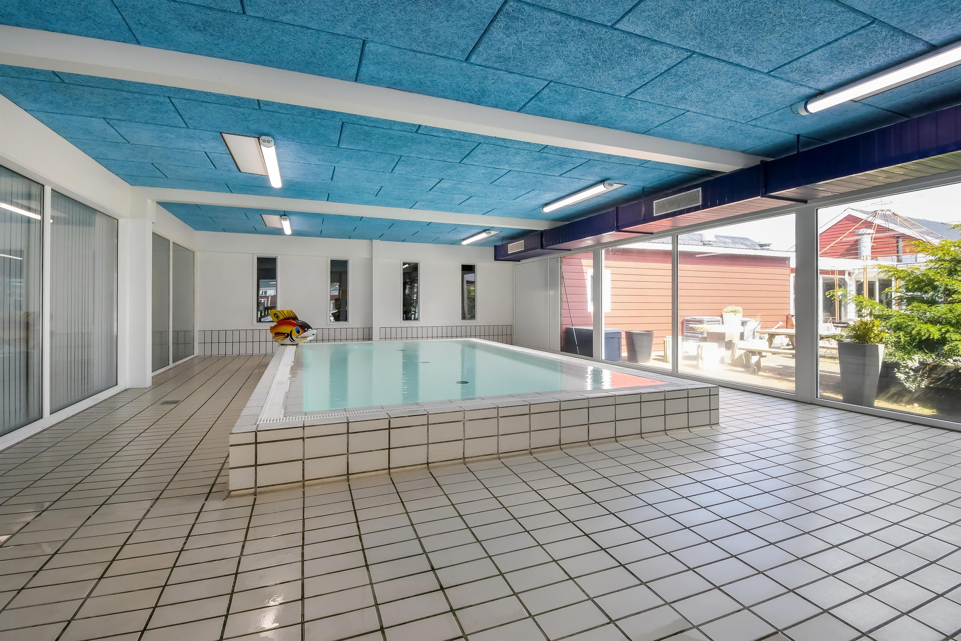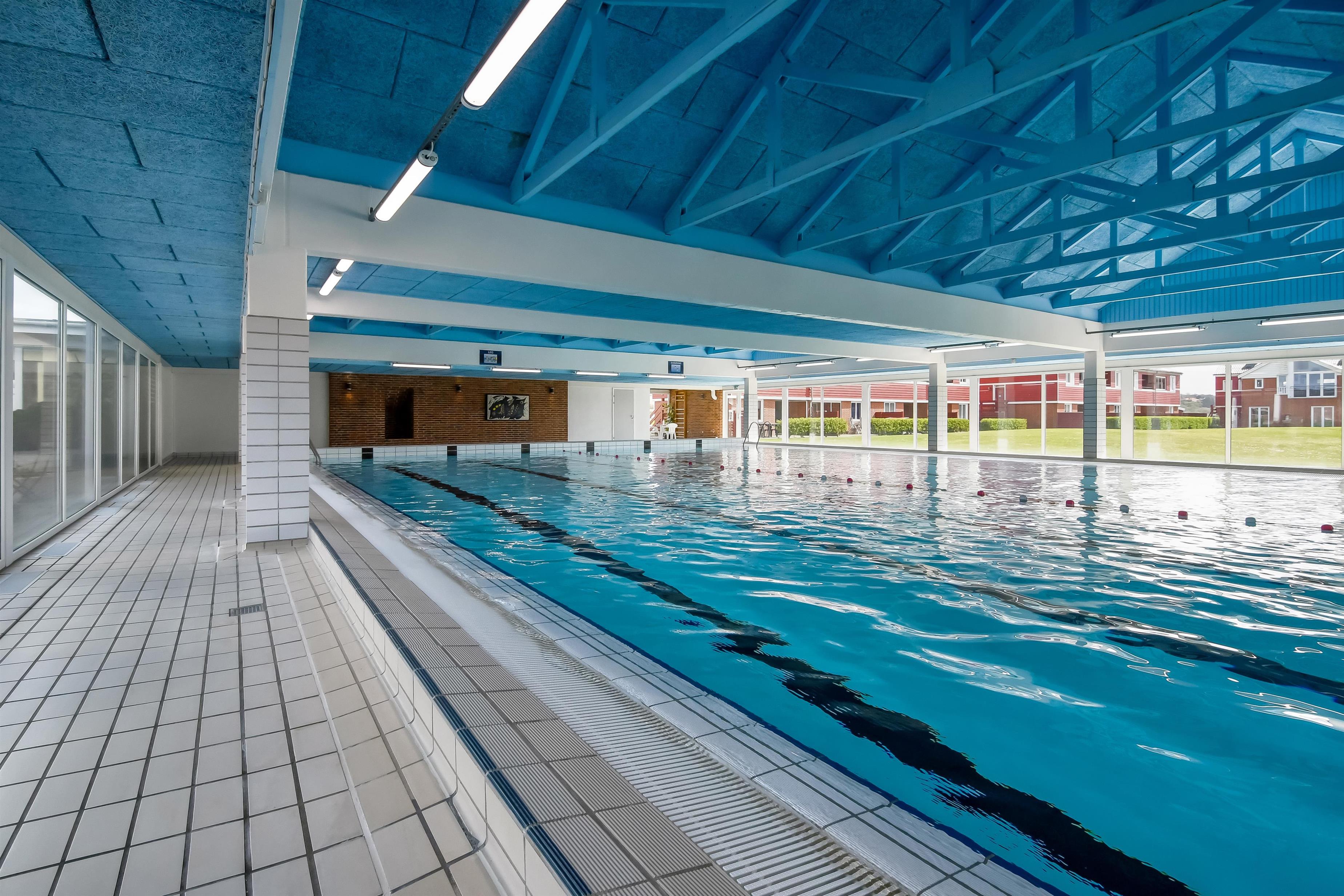Har man lyst til at bade, når vejret ikke lige er solrigt, kan man tage i svømmehallen, der også byder på spabad og dampsauna.