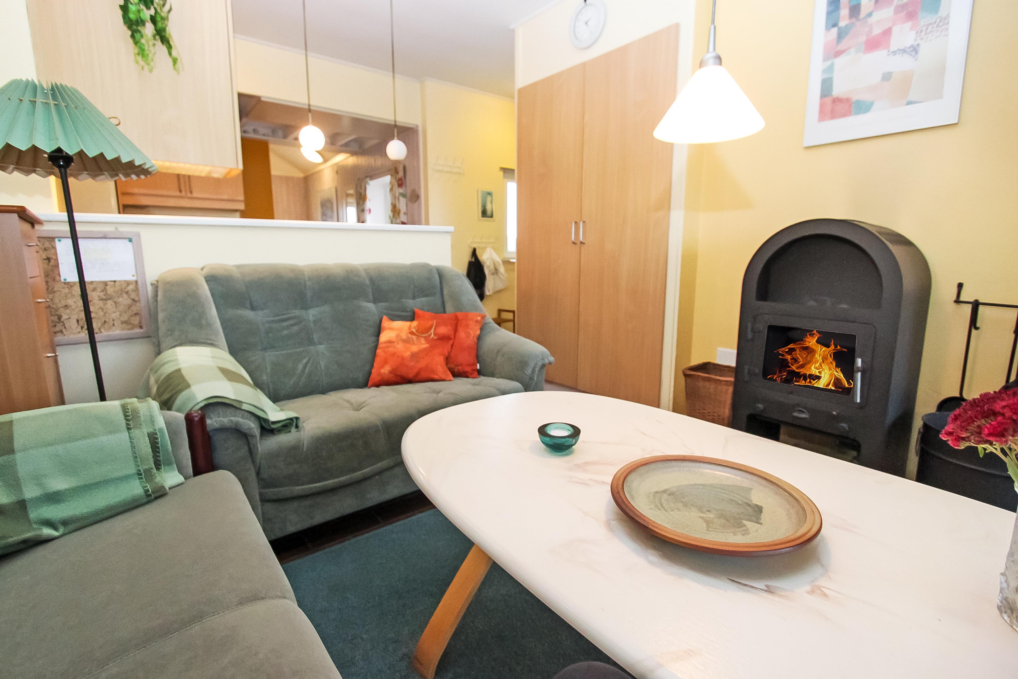 Lejligheden er beliggende på 1. sal. med en fantastisk flot udsigt over Limfjorden. Opholdsstuen er med dansk TV, brændeovn og polstermøbler. 1 soverum (1DS) + hems med 1 sovemulighed samt kombineret stue spiseplads og 2E som både kan stilles seperat eller ovenpå hinanden som en køjeseng så udsigten kan nydes. Lille køkkenhjørne med komfur, mikroovn og emhætte. Lille badeværelse med gulvvarme, toilet, håndvask og bruser. Altan med havemøbler, der kan lukkes helt af så det kan bruges som udestue. Har man el-bil eller en Plug-In hybrid, så er der 4 Ladebokse til Type 2 ladestik, der kan lade op til 11 kWh ved Feriecenteret - de er lige efter miljøstationen.