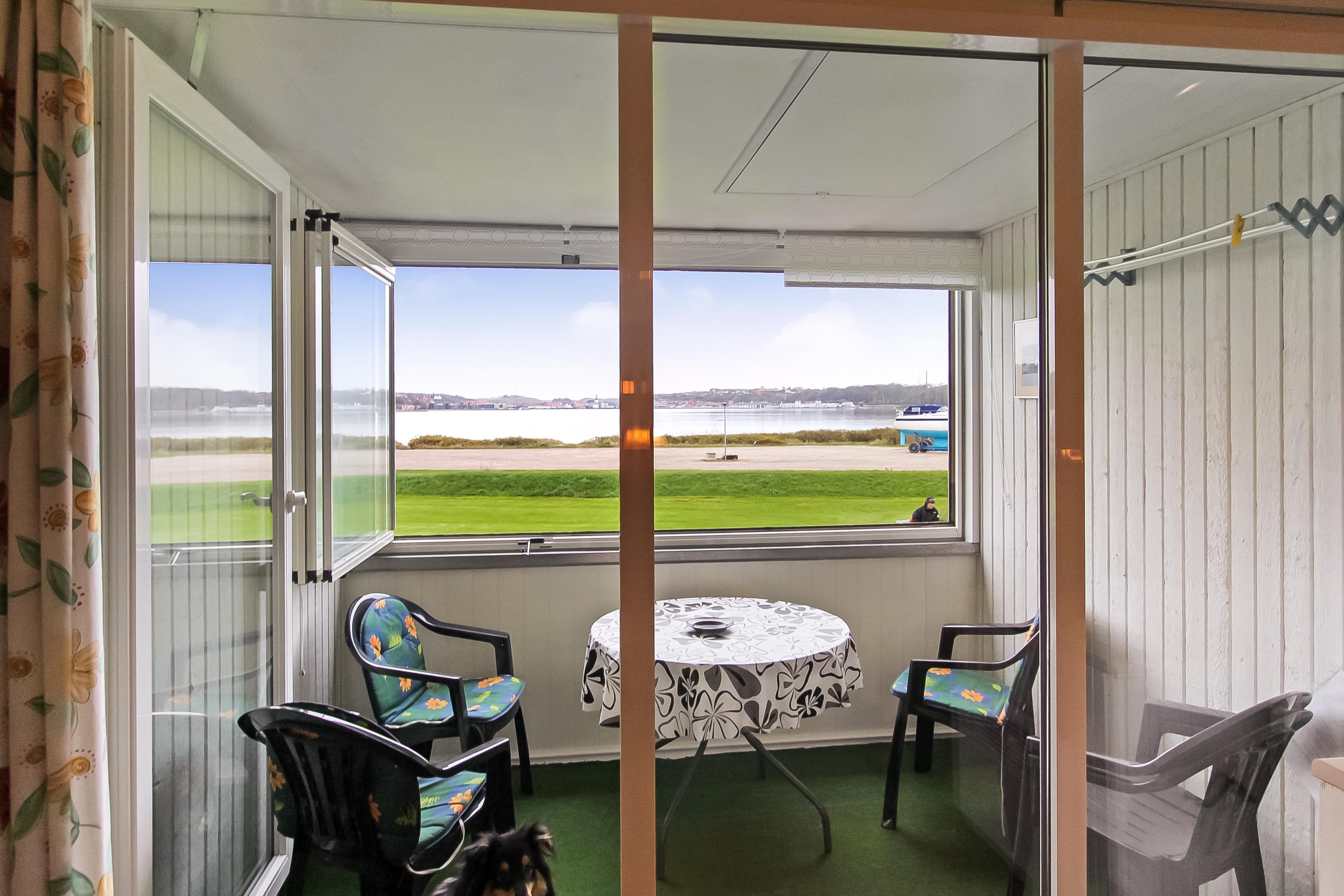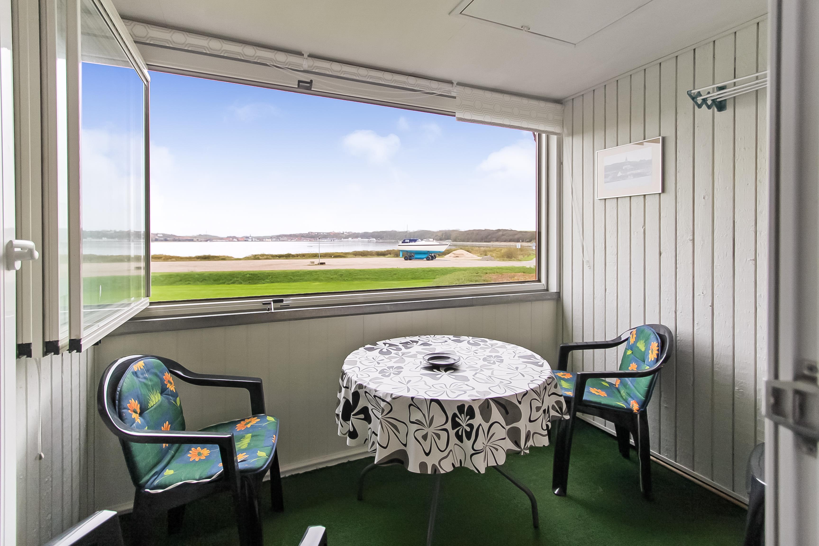 Dejlig ferielejlighed i Lemvig Feriecenter med flot udsigt over Limfjorden med Lemvig i baggrunden og Internet. Ikke rygerhus.