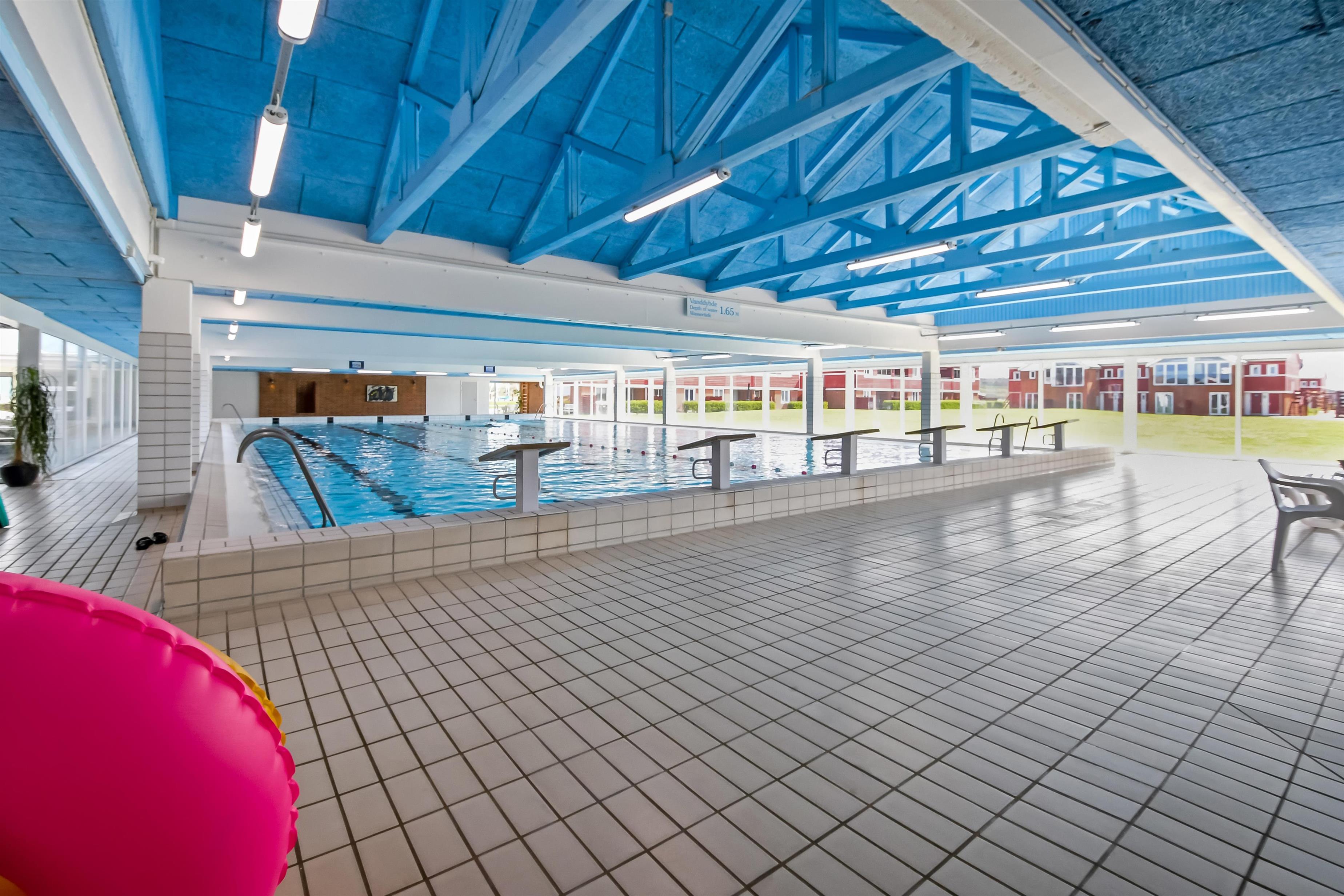 Har man lyst til at bade, når vejret ikke lige er solrigt, kan man tage i svømmehallen, der også byder på spabad og dampsauna.