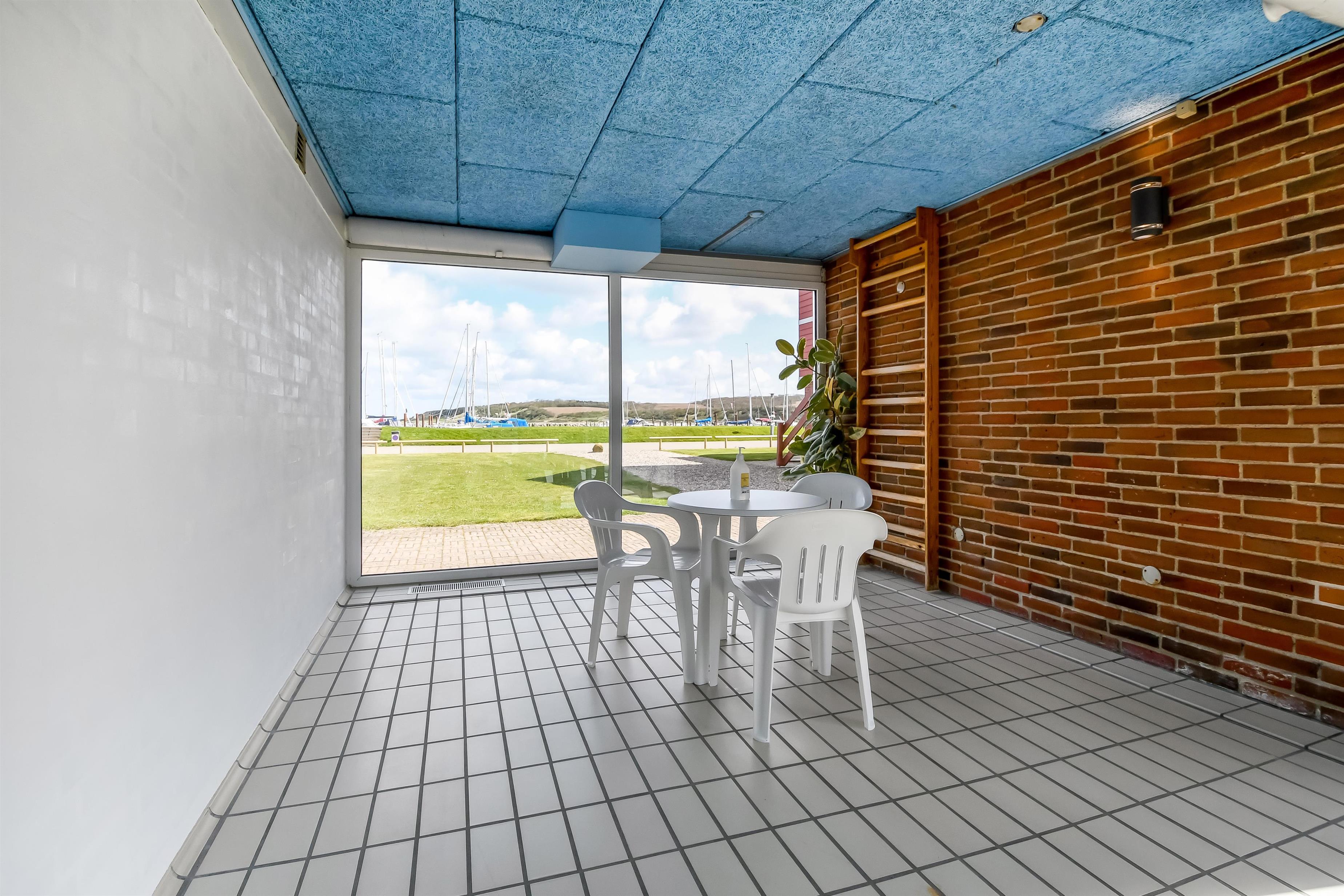 Der er 2 terrasser og den ene er hovedterrassen og vender mod sydvest og er delvis overdækket. Her er havemøbler og grill. Den anden terrasse vender mod fjorden og lystbådehavnen og er perfekt til at nyde morgensolen og livet på havnen fra. Lemvig Feriecenter er et roligt område og dog stadig kun 1500 m fra Lemvig hvor man kan spadsere og gå på indkøb eller nyde stemningen ved havnen. På selve feriecenteret er der masser af faciliteter. Spiller du golf ligger Lemvigs 18 hullers golfbane kun 1,5 km meter fra lejligheden. Danmarks længste mountainbikerute i Klosterheden og Vesterhavet ligger også ca. 8 km fra lejlighederne og nås let i bil eller måske på cykel.