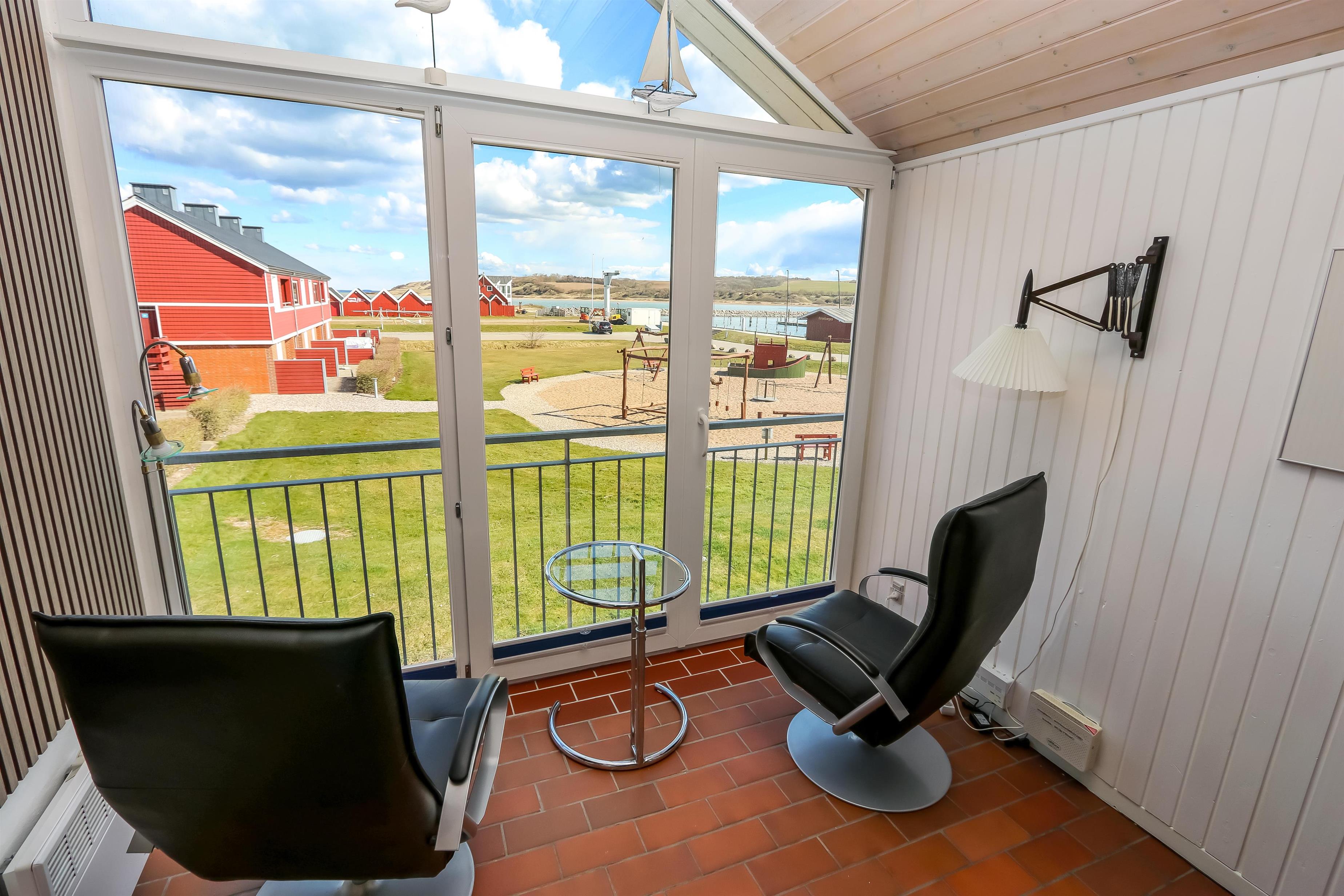 Ferielejlighed til 4 personer og 1 hund tilladt. Lejligheden har en terrasse og gratis trådløs internet. Ikke rygerhus. Herfra er der delvis udsigt over Limfjorden samt det grønne fællesareal med en legeplads. Når I bor her så benyt endelig Lemvig Feriencenters mange muligheder. Her er gratis adgang til svømmehal med sauna, dampbad, ekstra varm børnebassin og boblebad, tennisbaner, beachvolleybaner, legepladser og hoppepuder.