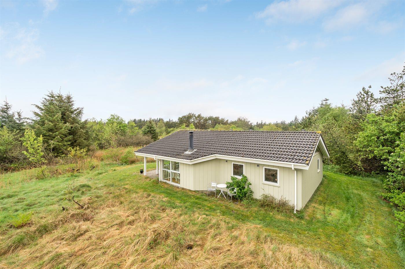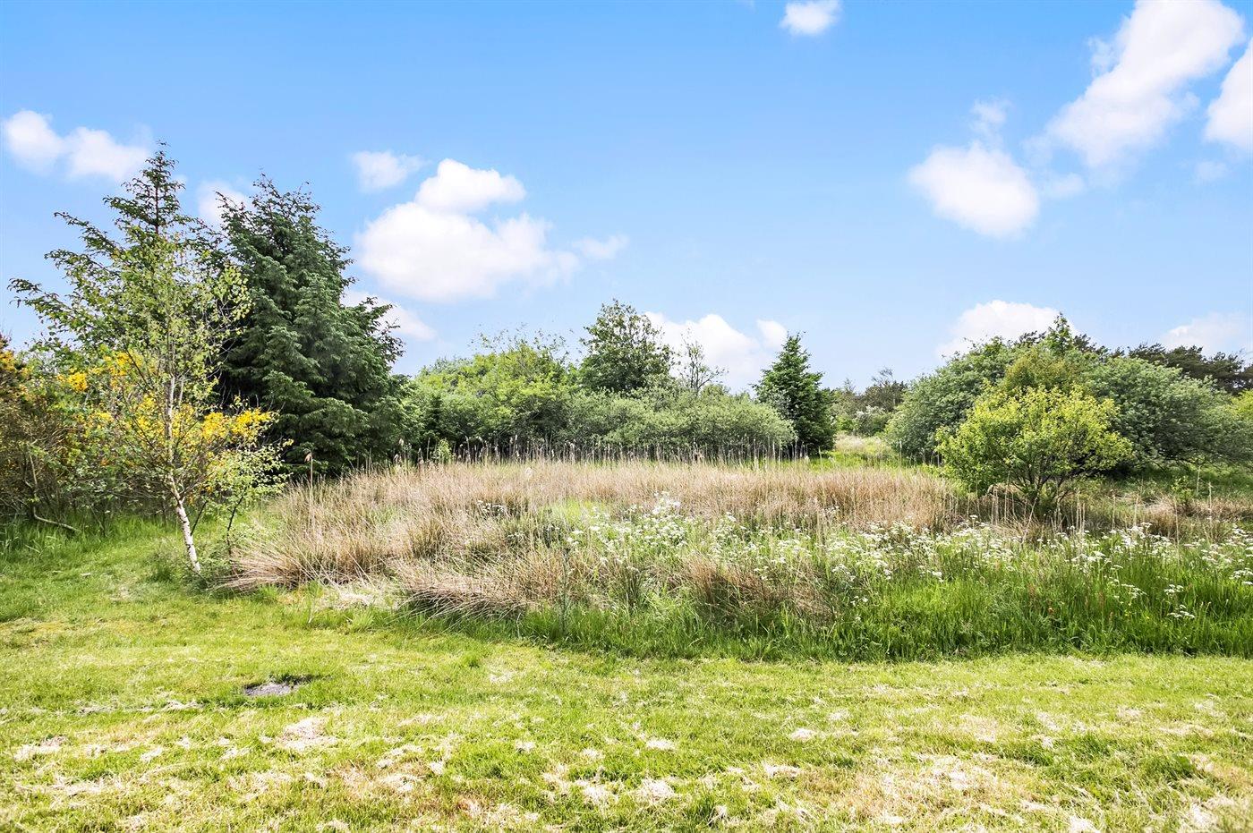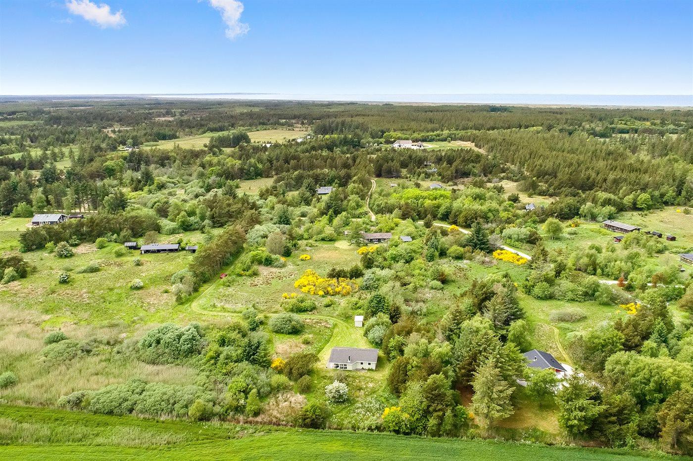 Hyggeligt sommerhus på stor naturgrund mellem Vesterhavet og Limfjorden med brændeovn og terrasse.