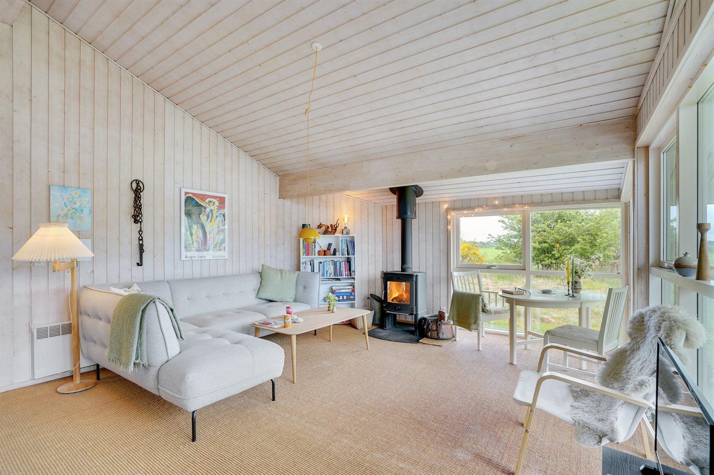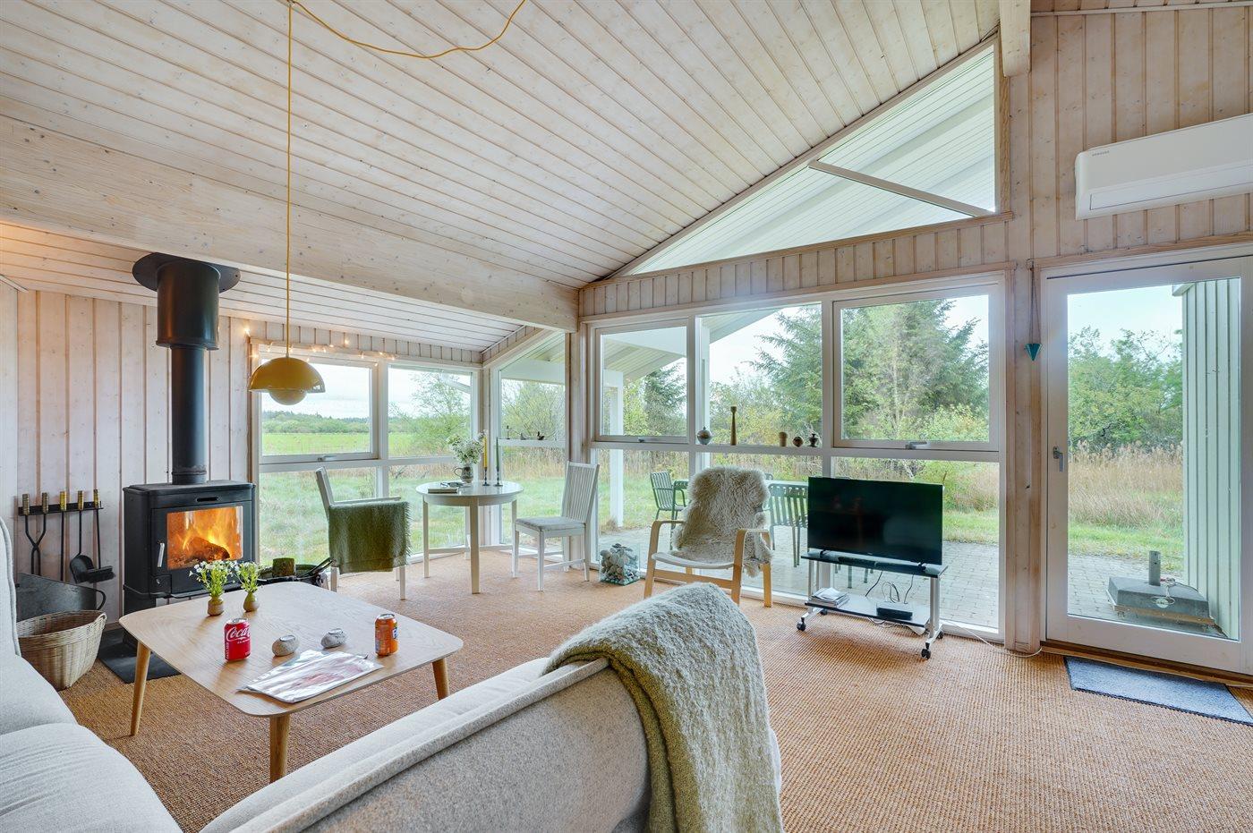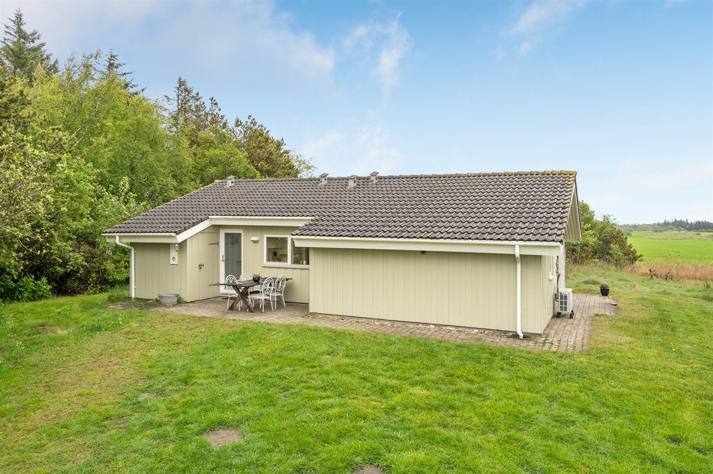 Hyggeligt sommerhus på stor naturgrund mellem Vesterhavet og Limfjorden med brændeovn og terrasse.
