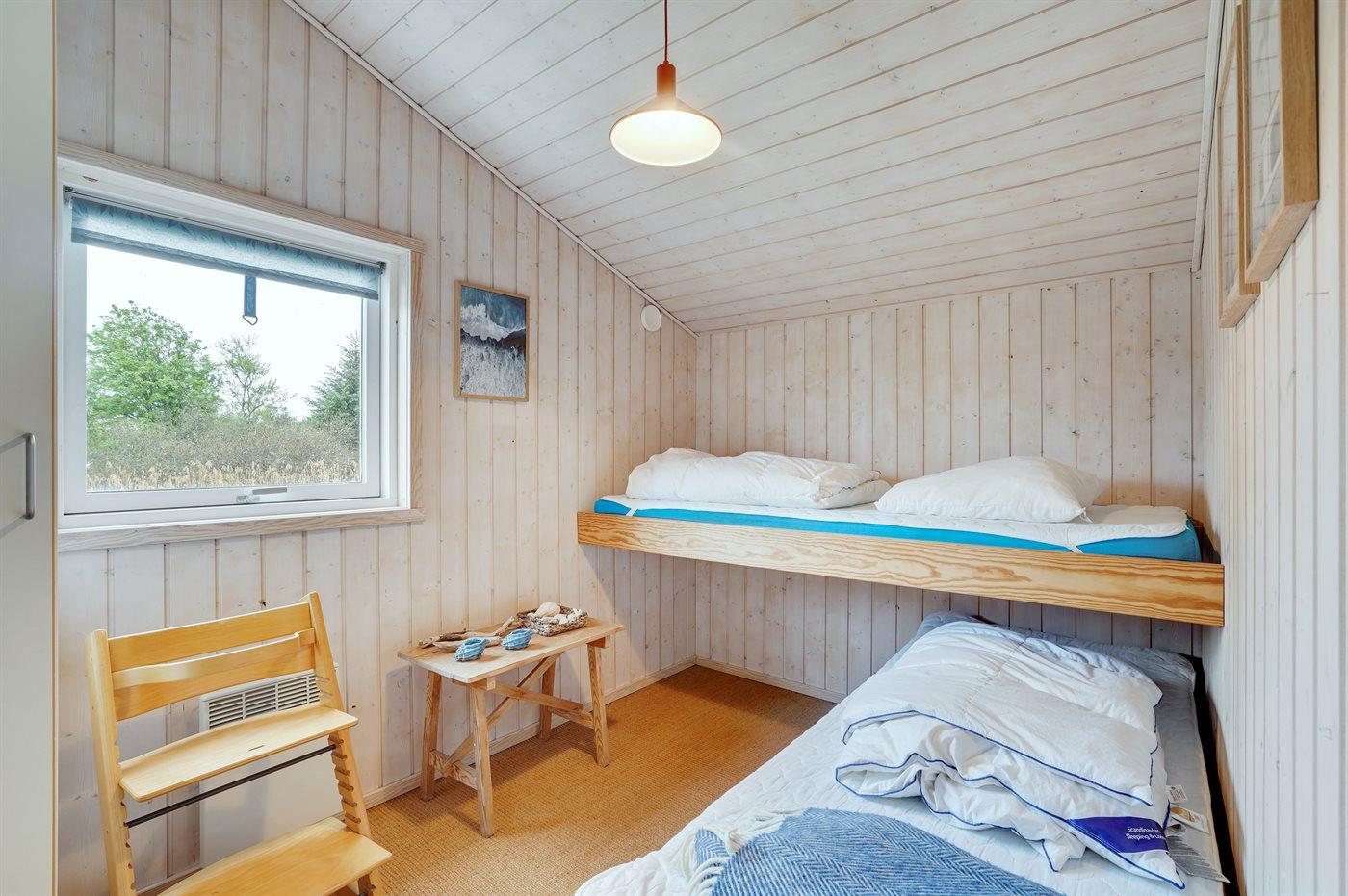 Der er i alt 3 soveværelser. Sovepladserne fordeler sig på: 2 sovepladser i dobbeltseng. 4 sovepladser i køjesenge.