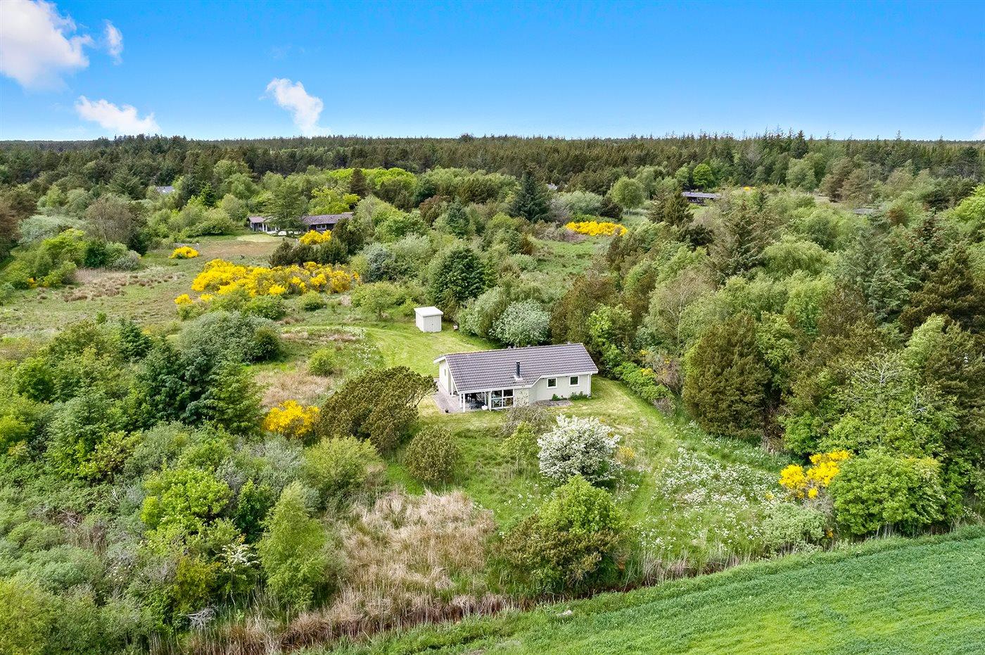Skønt sommerhus beliggende på en 1 hektar stor naturgrund midt mellem Vestehavet og Limfjorden. Der er gåafstand til skov.
