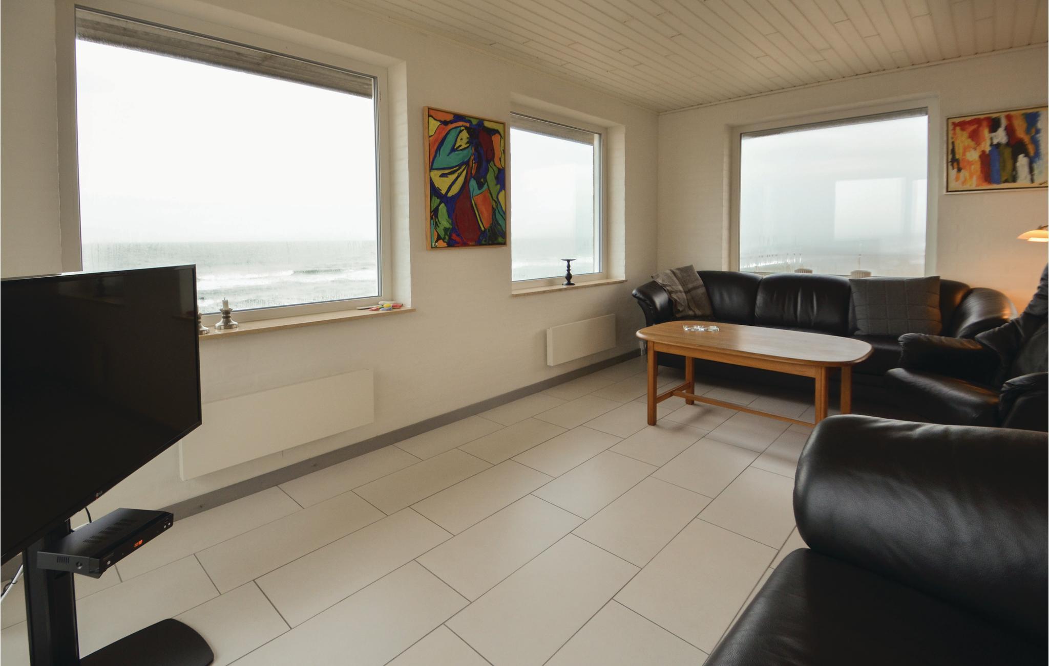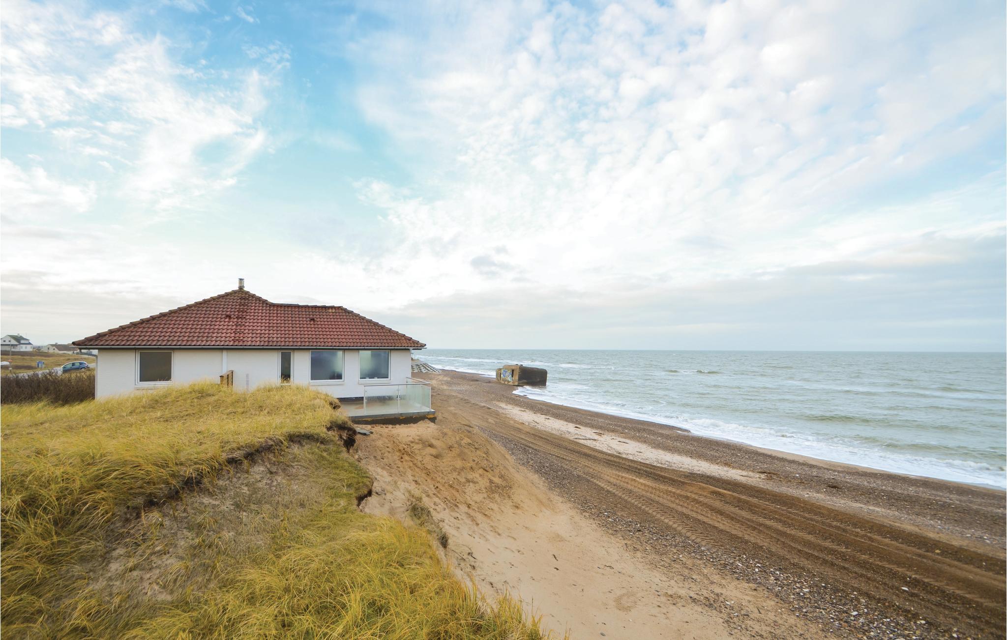 Dette skønne sommerhus ligger ved Lild direkte ned til den dejlige strand. Fra huset er der den mest fantastiske udsigt over det brusende vesterhav - en udsigt, som kan nydes fra såvel husets store panoramavinduer som fra én af de tre udendørs terrasser. Faktisk ligger feriehuset så tæt på havet, at skumsprøjt når op til vinduerne i stormvejr, og den beroligende lyd af bølgeskvulp konstant kan anes som 'baggrundmusik'. I nærheden af feriehuset finder man Bulbjerg, en 47 m høj limstensklint, som er Danmarks eneste fuglefjeld og den sydligste yngleplads for riderne. Fra toppen af Bulbjerg er der en enestående udsigt over Vesterhavet og klitterne, plantagerne og hedearealerne i området, mens man for foden af den stejle klint kan være heldig at finde forstenede søpindsvin og andre fossiler. Der er heller ikke langt til Vejlerne, Nordeuropas største fuglereservat, hvor der er rig mulighed for at opleve de sjældne fuglearter fra nogle af de mange udsigtspunkter og opstillede fugletårne, så husk endelig kikkerten! Derudover findes her mange smukke vandre- og cykelruter, bl.a. Vestkyststien, og talrige gode fiskesteder ved hav, sø og fjord. Således kan man kaste snøren ud fra stranden lige uden for feriehuset og håbe på, at en torsk eller en fladfisk får lyst til at bide på. Trænger man til afveksling fra den skønne, men samtidig lidt barske natur ved Vesterhavet, er der kun få kilometer til en helt anderledes, blid natur ved Limfjorden med idylliske småbyer, små færgehavne og roligere vande. Skal de kulturelle interesser også plejes, kan man tage en tur forbi Kirsten Kjærs Museum og opleve kunstnere midt i deres kreative arbejdsproces, besøge fæstningsanlæggene fra 2. Verdenskrig i Hanstholm og ved Bulbjerg eller gå på vikingernes grave ved Frøstrup. Byerne Thisted og Fjerritslev ligger i kort køreafstand fra feriehuset, og begge byer er gode og hyggelige handelsbyer, der samtidig byder på flere seværdigheder og aktivitetsmuligheder som f.eks. bowling, svømmehal, museer, gallerier og udstillinger.