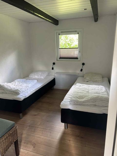 Huset har 3 fine soveværelser – to med dobbeltsenge og et med to enkeltsenge. Der er skabe i alle værelser.