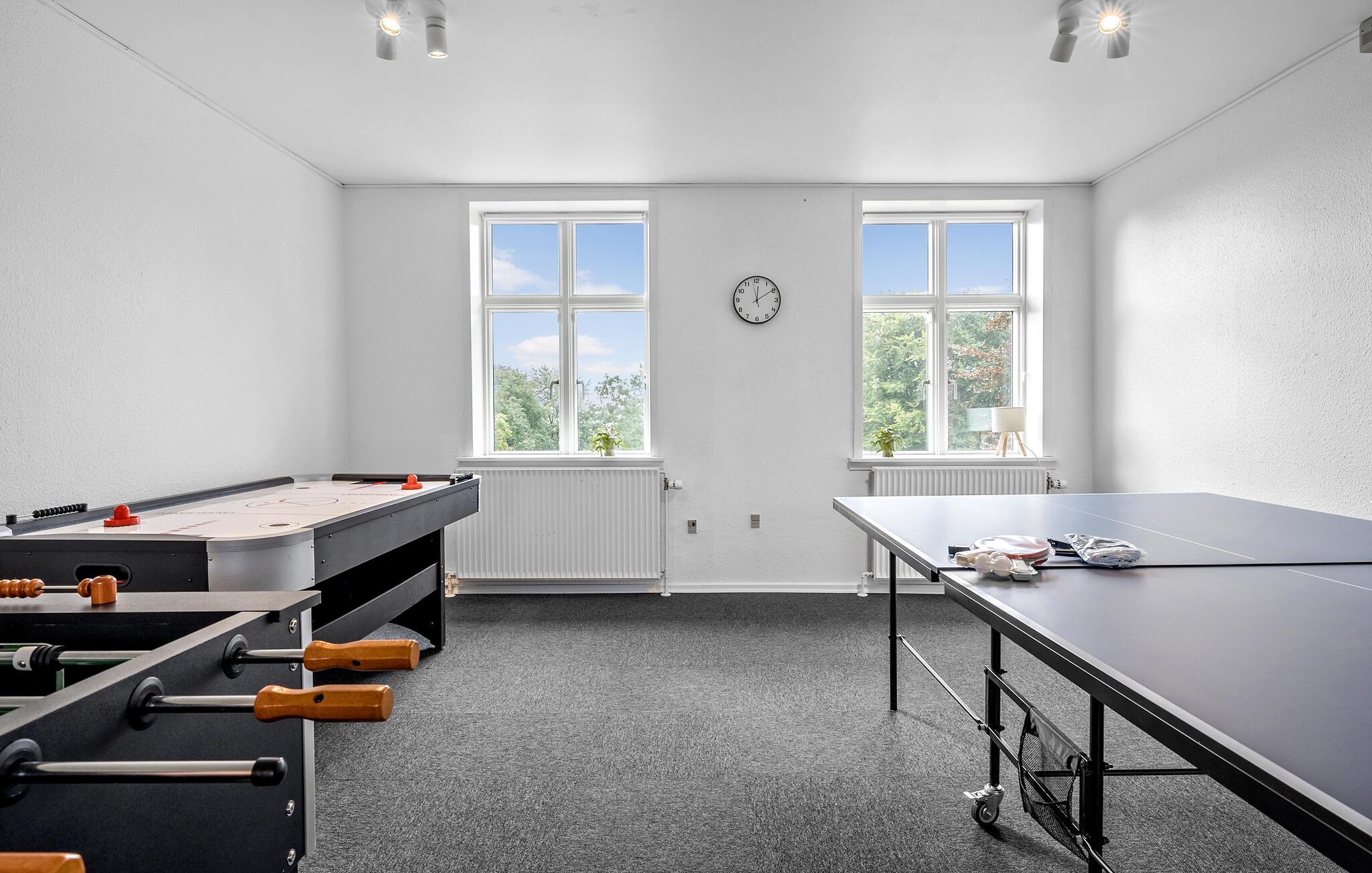 Om eftermiddagen kan I servere kaffe og kage på terrassen, mens børn og barnlige sjæle kan afprøve hoppepuden, de andre legeredskaberne eller måske lave en fodboldturnering. Der er også en masse sjove indendørs spil til rådighed i aktivitetsrummet. Hvis I vil ud og få lidt frisk luft til hovedet, kan I gå ture gennem den parklignende have og nyd roen. Vesterhavskysten ligger kun en kort køre væk, hvor I kan gå længere ture i skønne naturomgivelser.
