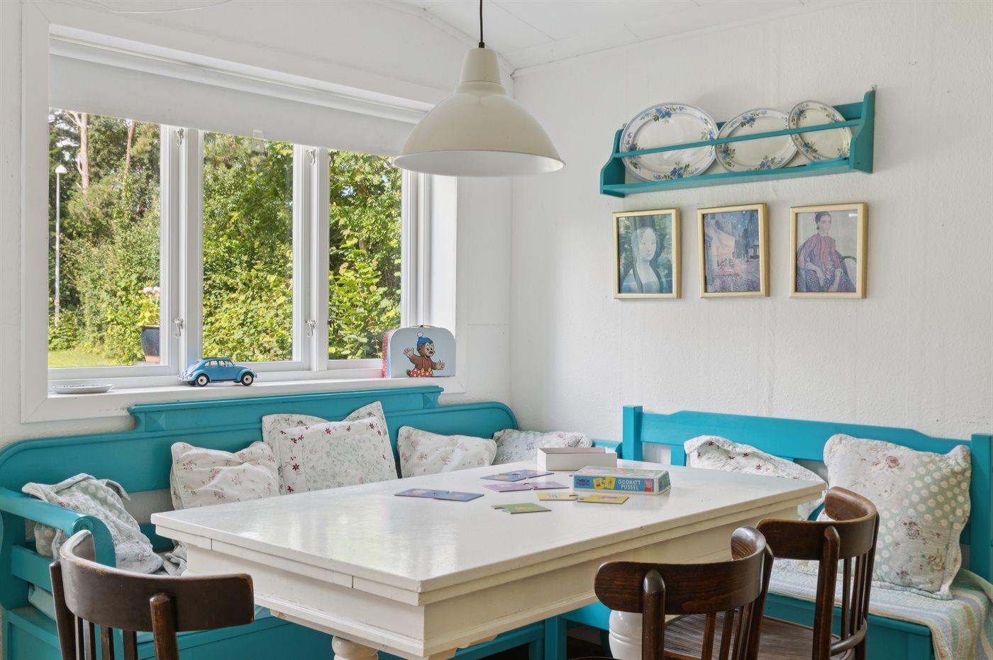 Grunden er indhegnet, hvilket gør det trygt for både børn og kæledyr at færdes frit. Sommerhuset er derfor også ideelt for børnefamilier, der ønsker en tryg og afslappende ferie i naturskønne omgivelser. Den store have indbyder til leg og aktiviteter – her er god plads til at spille både kroket og badminton.