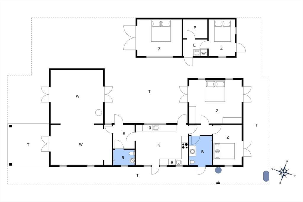 Dette rummelige sommerhus byder velkommen med en hyggelig og funktionel indretning, perfekt til både afslapning og samvær. Stuen er indrettet med en spiseplads og en hyggelig sofakrog, hvor du kan samle familien til brætspil eller filmaftener foran brændeovnen. Køkkenet er praktisk udstyret med to håndvaske og to opvaskemaskiner, så der er rigelig plads til madlavning, selv når hele familien er samlet. Huset har to badeværelser, hvilket sikrer, at alle får en behagelig start på dagen.