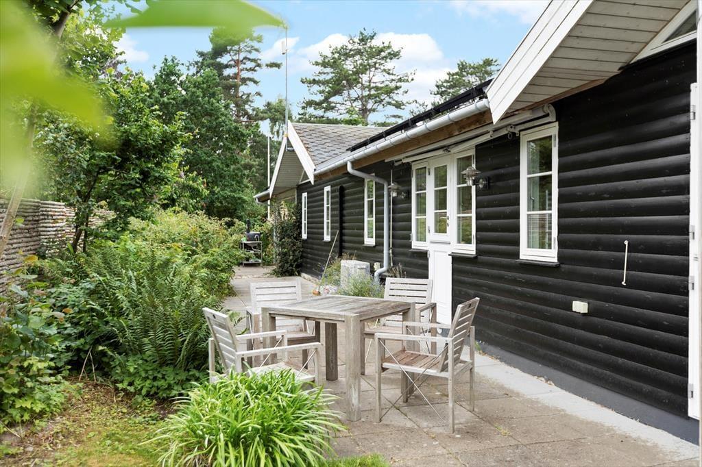 Udenfor venter en stor, åben have med en græsplæne, der indbyder til boldspil og andre sjove havespil. Et charmerende gårdmiljø forbinder hovedhuset med annekset og skaber en hyggelig oase til uformelle måltider og afslapning i det fri. Her finder du også en udendørsbruser – perfekt til en hurtig afkøling efter en tur på stranden.