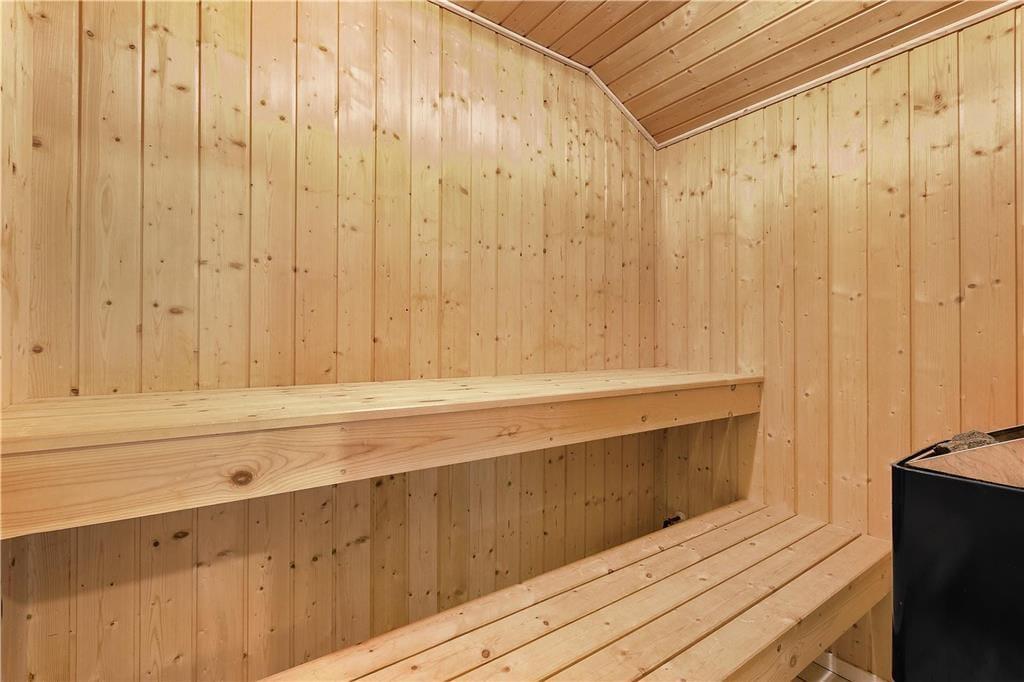 Huset har to soveværelser med dobbeltsenge og et værelse med to enkeltsenge – ideelt for både børn og voksne. Badeværelset byder på luksus med sauna, så du kan forkæle dig selv og virkelig komme ned i gear. Der er desuden et gæstetoilet, som gør hverdagen lidt lettere, når familien er samlet.