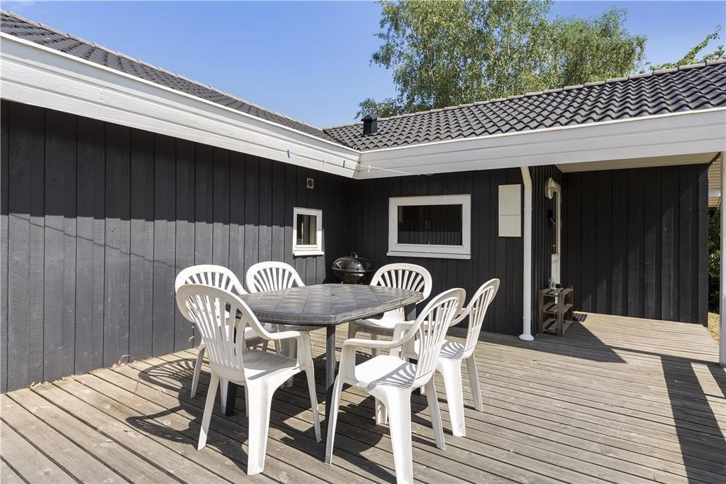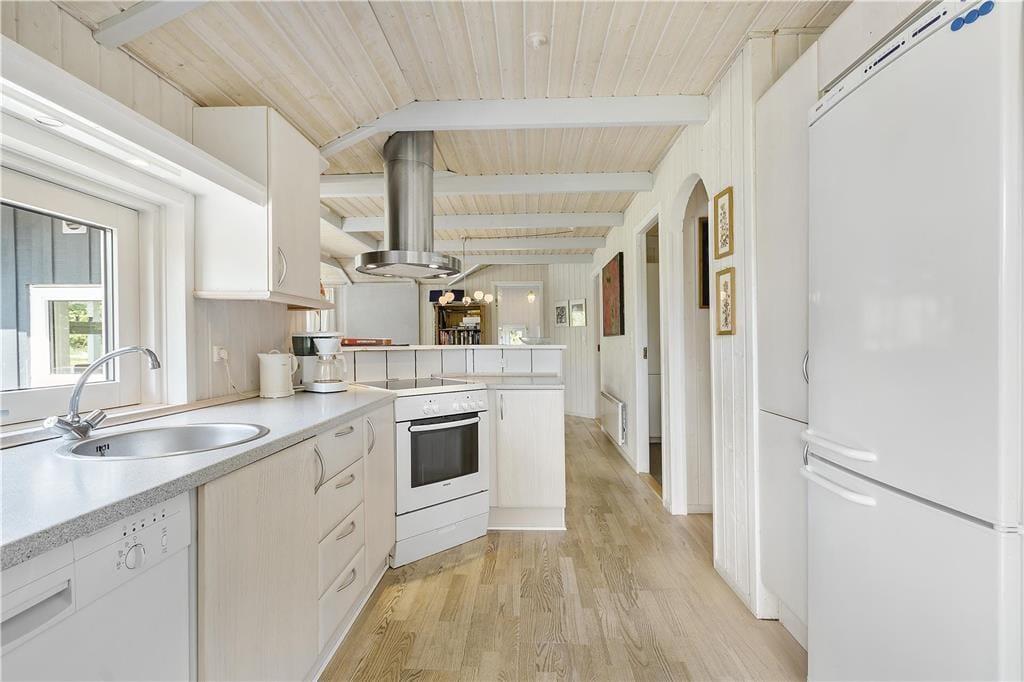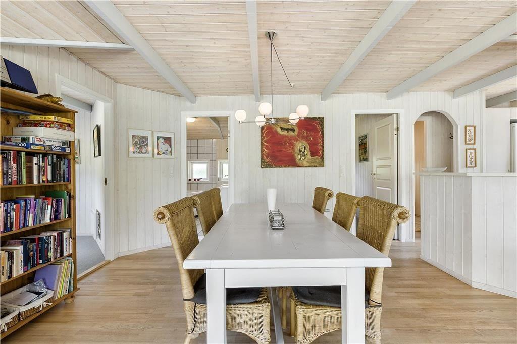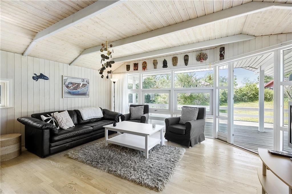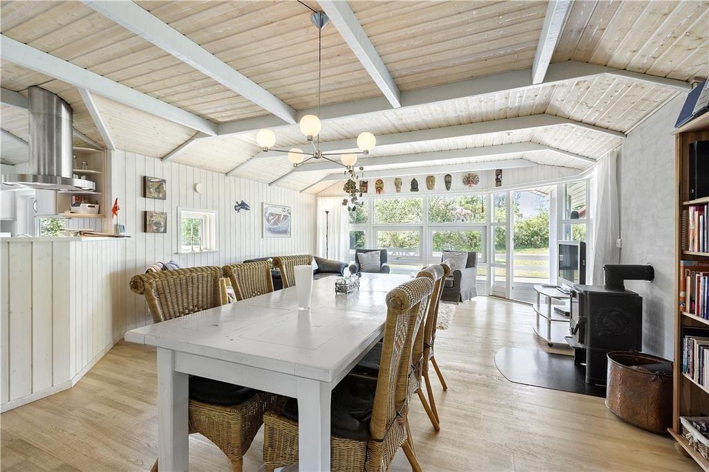 I dette sommerhus er der plads til hyggelige stunder med familien. Det åbne køkken ligger i direkte forbindelse med opholdsstuen, hvor der både er spiseplads til fælles måltider eller hygge med brætspil og en hyggelig sofagruppe til afslapning og samvær foran fjernsynet eller med en god bog. Fra stuen er der direkte udgang til en delvist overdækket terrasse, hvor I kan nyde morgenkaffen eller aftensolen, uanset vejret.