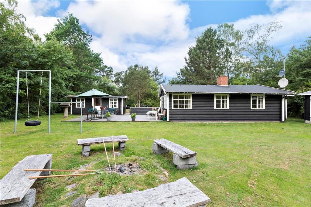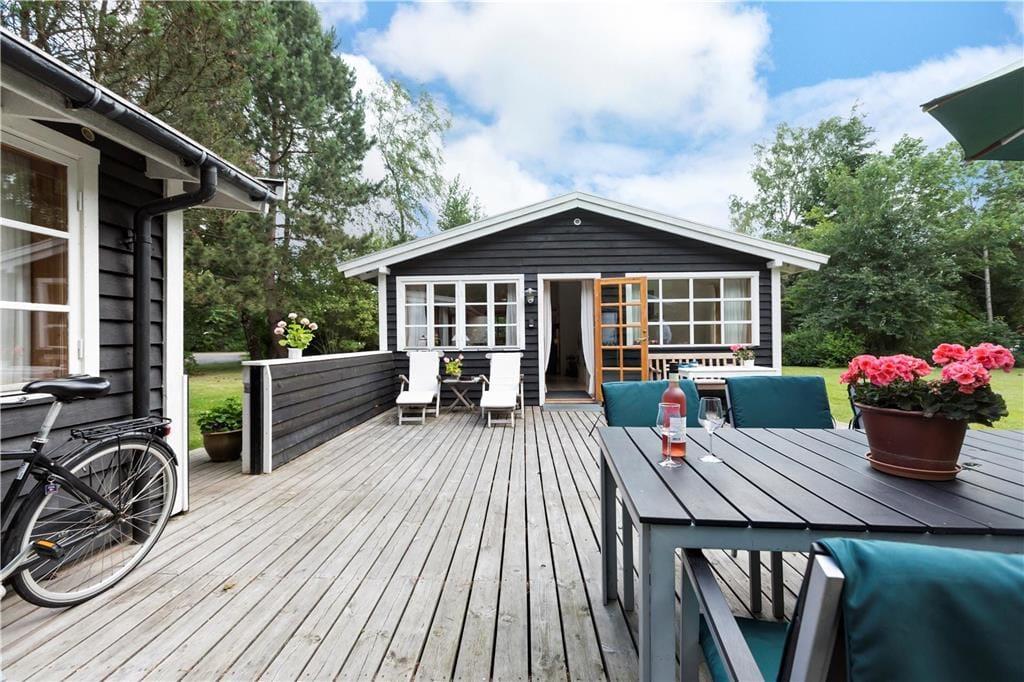 Sommerhuset ligger på en rolig, lille sommerhusvej med minimal trafik, hvilket gør det ideelt for børn, der vil tegne hinkebaner på vejen eller øve sig på at cykle i trygge omgivelser.
