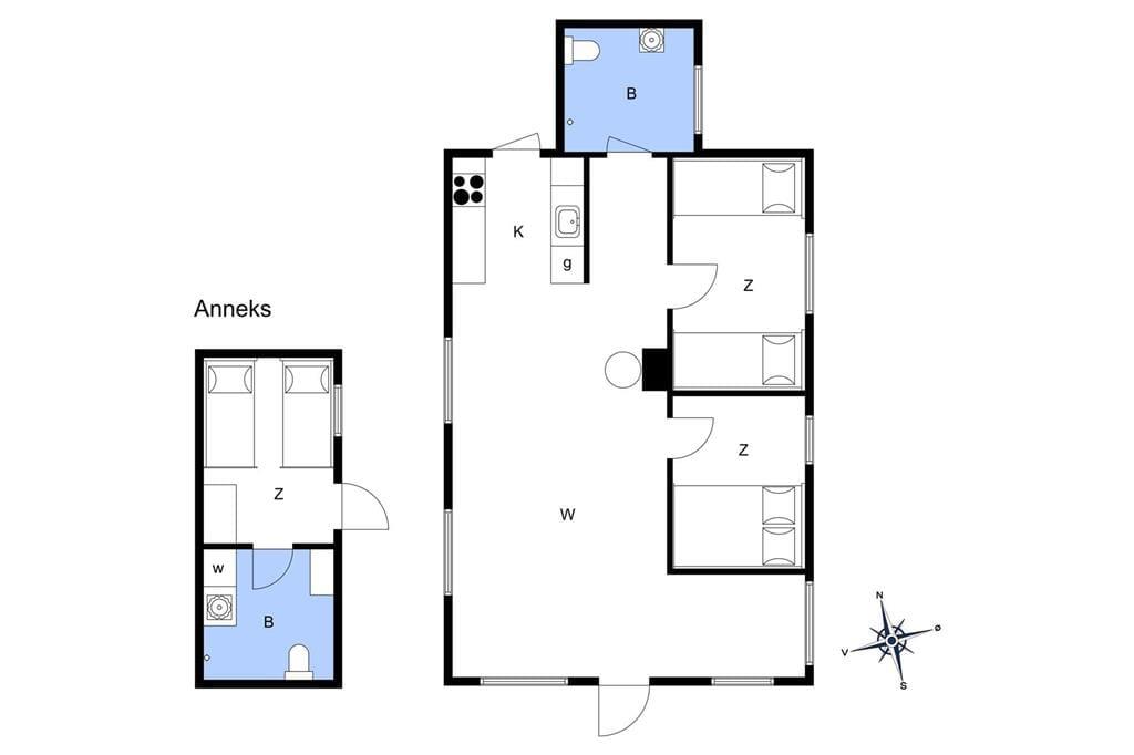 Køkkenet er åbent og har en dør ud til haven, hvilket giver en skøn forbindelse mellem inde- og udelivet. Huset rummer to gode soveværelser samt et badeværelse. Annekset tilbyder endnu et soveværelse og badeværelse, hvilket gør det oplagt til gæster, der ønsker lidt privatliv.