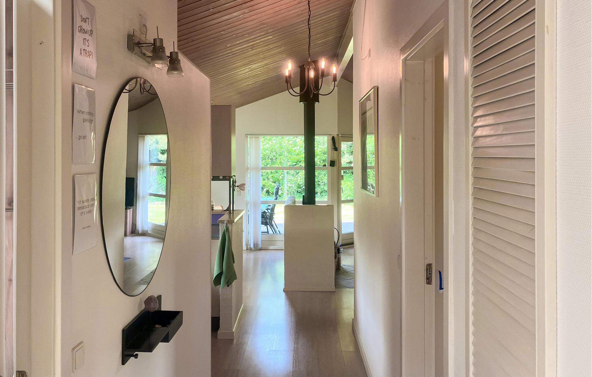 Velkommen til dette fin feriehus, der byder jer velkommen med en hyggelig atmosfære. Nyd dagens måltider med udsigt over haven, planlæg jeres aktiviteter sammen i de behagelige sofaer og slap af med en brætspilsaften, mens brændeovnen sørger for ekstra komfort.