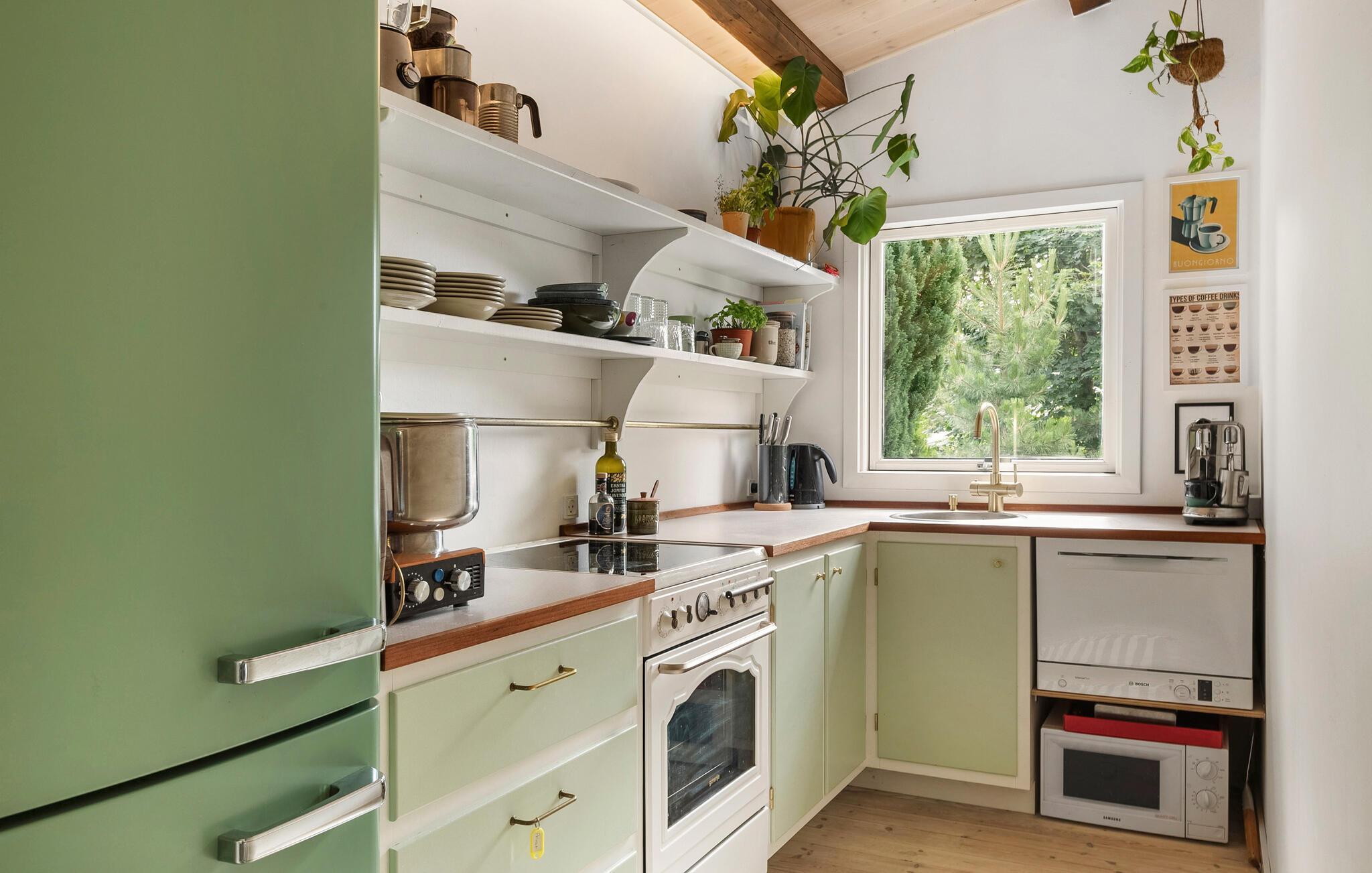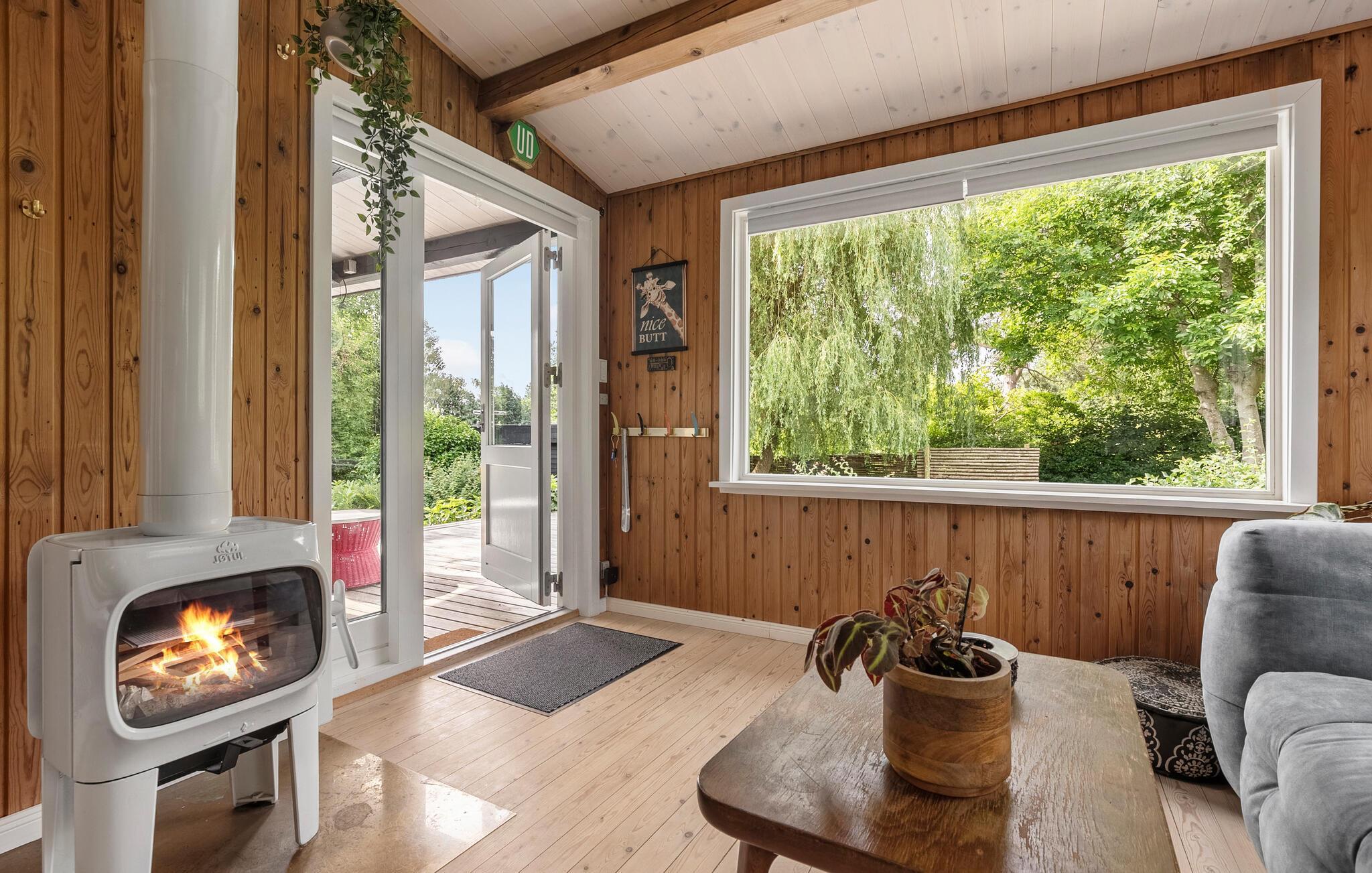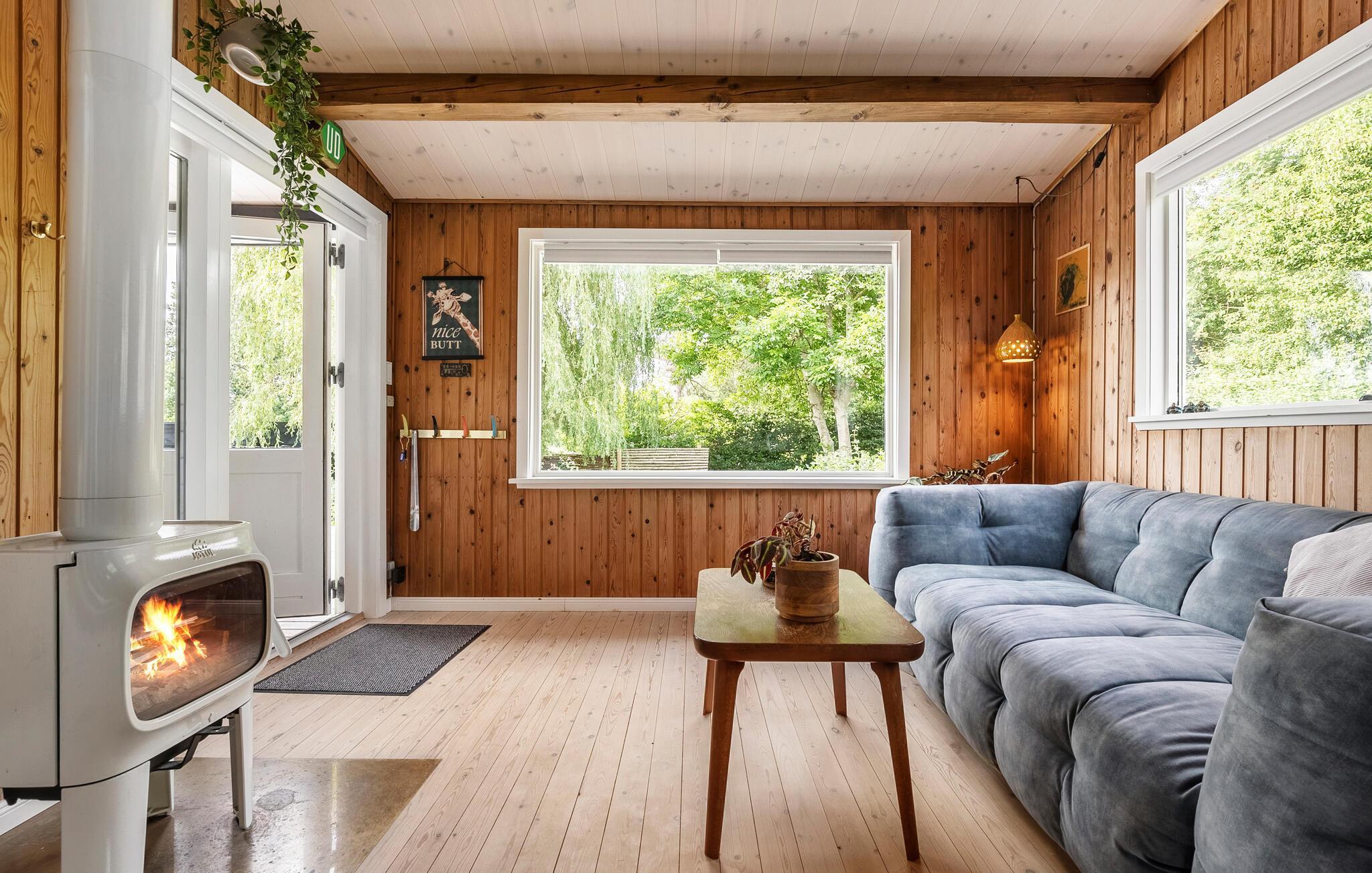 Dette karakterfulde hus har en beroligende atmosfære og sans for detaljer. Store vinduer lukker masser af naturligt lys ind i stuerne, træpanelerne skaber en hyggelig atmosfære, og på kølige dage kan I tænde den hvide brændeovn. Slap af her, mens I læser, snakker eller lytter til musik, og planlæg feriendag præcis som I ønsker.