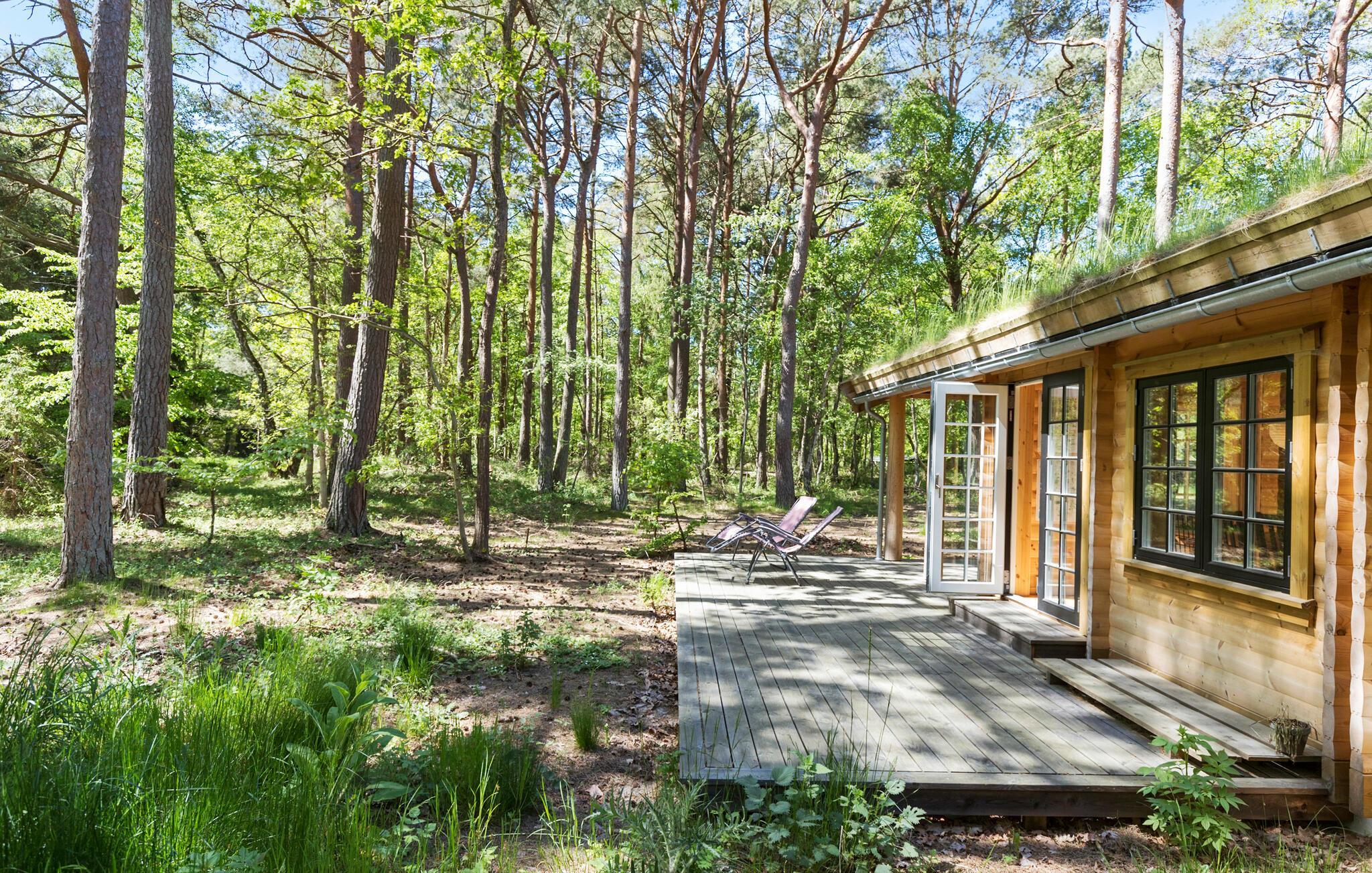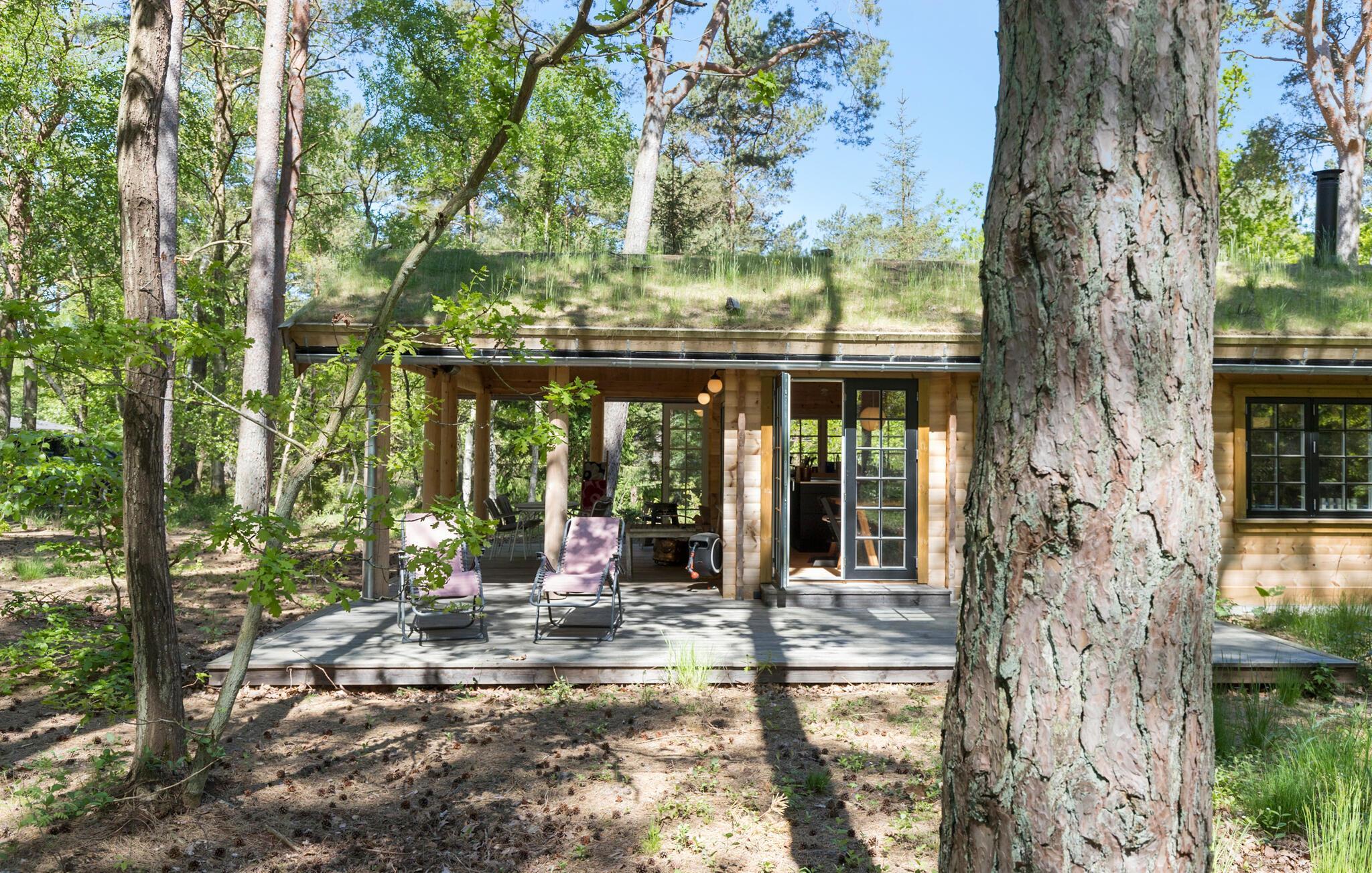 Flot træhus med naturtag nær Arresø i Nordsjælland, perfekt til familieferie med komfort og naturskønne omgivelser.