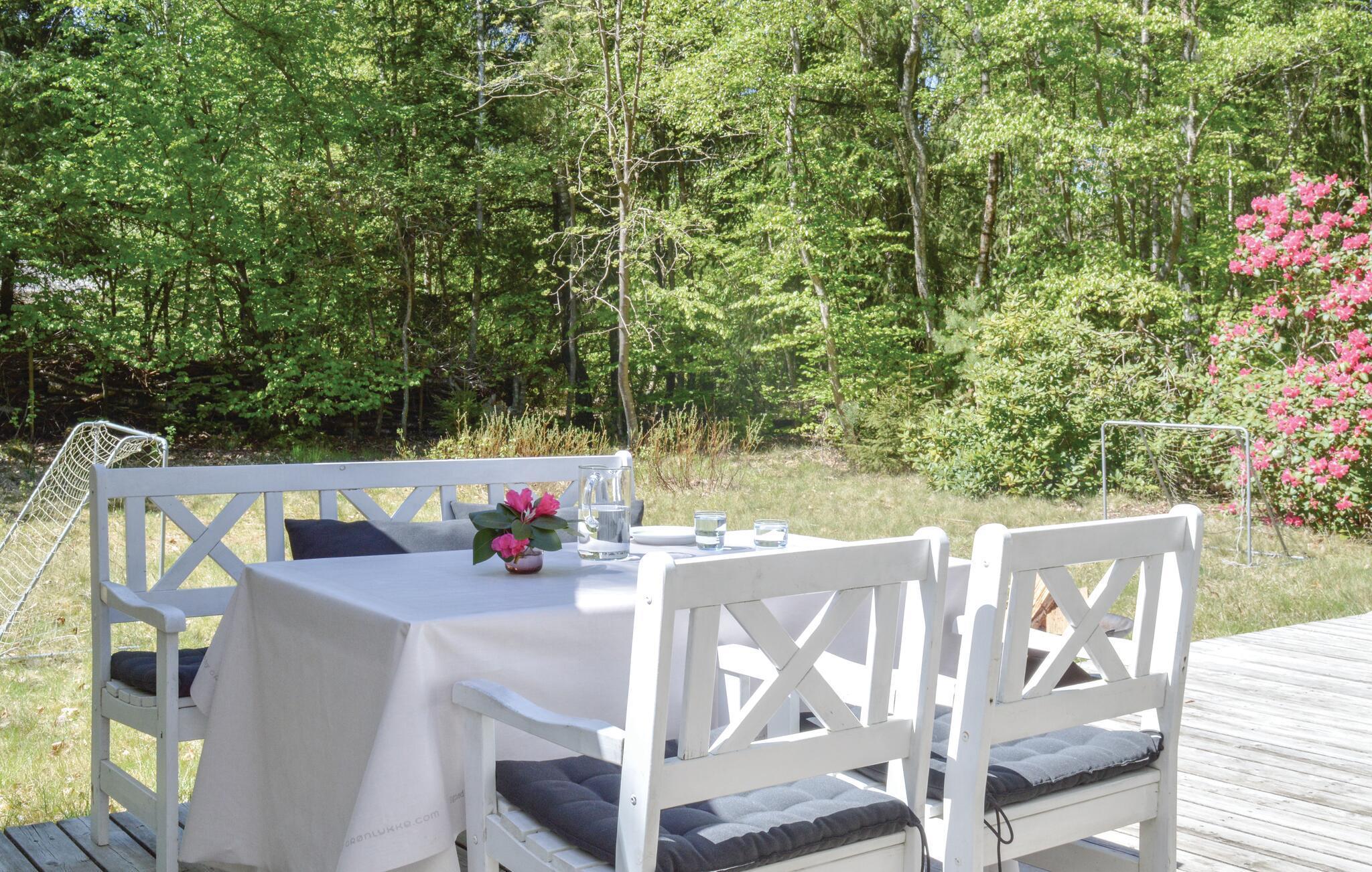 Dette hyggelige feriehus lægger op til en afslappende pause. Den åbne stue og køkken tilbyder jer en indbydende atmosfære til tid sammen. Herfra kan I gå direkte til den overdækkede terrasse, hvor I kan tilbringe afslappende aftener eller blot nyde udsigten over haven. Den praktiske indretning og varme design gør huset til det ideelle tilflugtssted for hele familien.