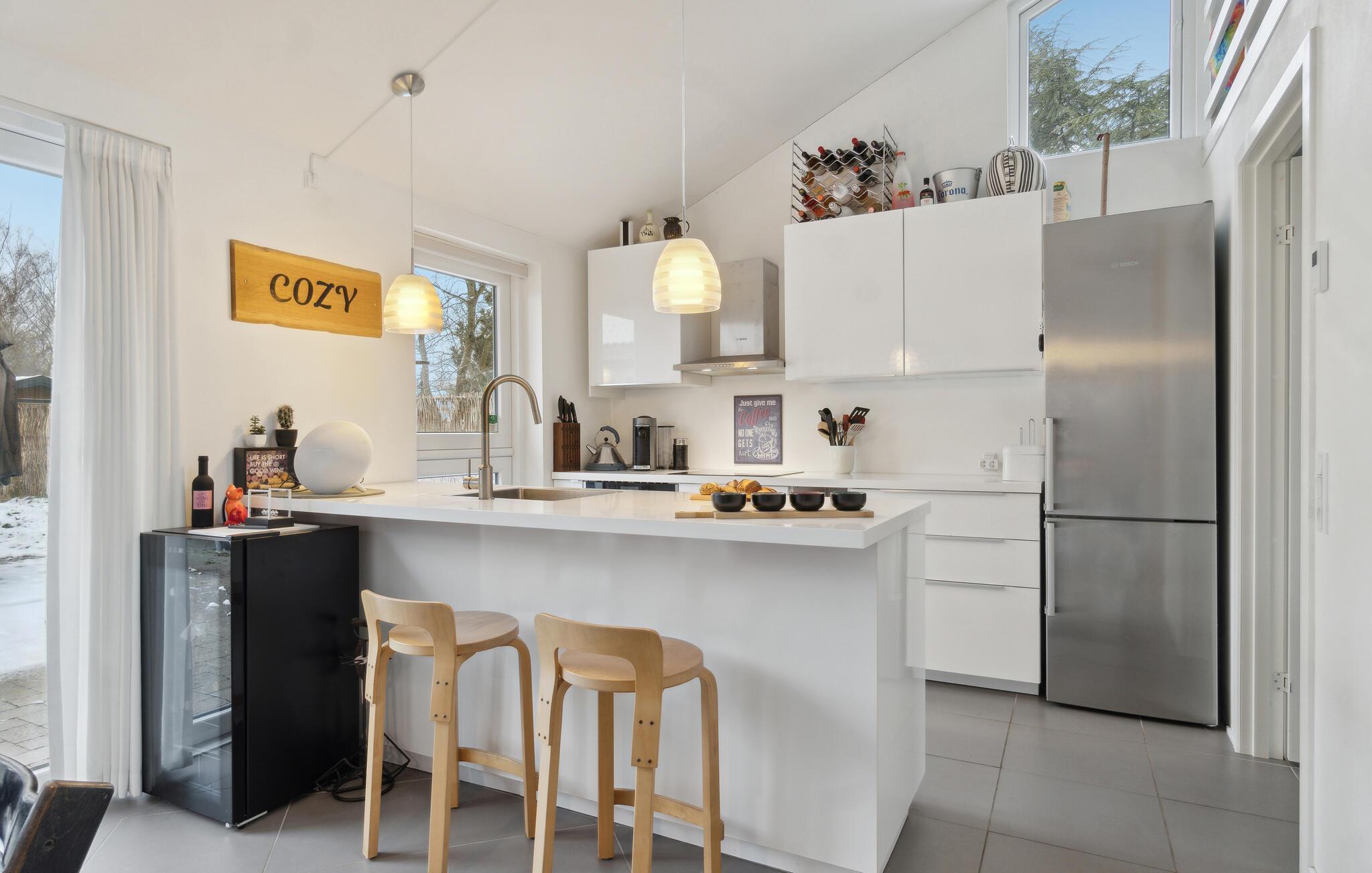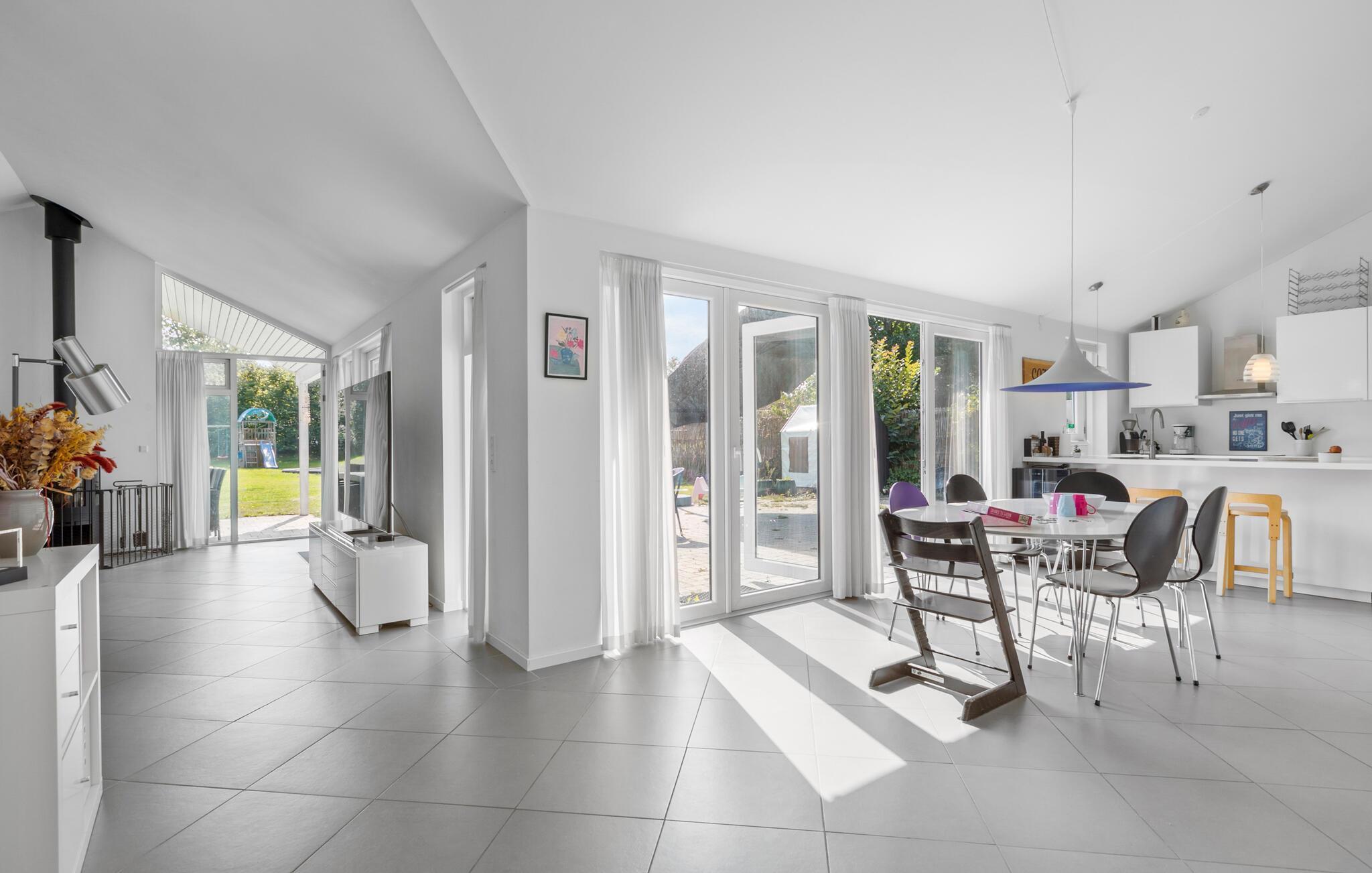 Glæd jer til at ankomme til denne populære badeby på Den Danske Riviera og til at gøre dette smukke feriehus til jeres andet hjem. De lyse lokaler og det høje gavlloft vil med det samme få jer til at slappe her, hvor I bare skal nyde jeres ferie og glæde jer til de mange dejlige faciliteter. Huset er et paradis for de mindste i familien, da der er en masse spil og legetøj, der bare venter på at blive leget med. Lav mad sammen i det moderne køkken eller slap af om aftenen med et boblebad i boblebadet.