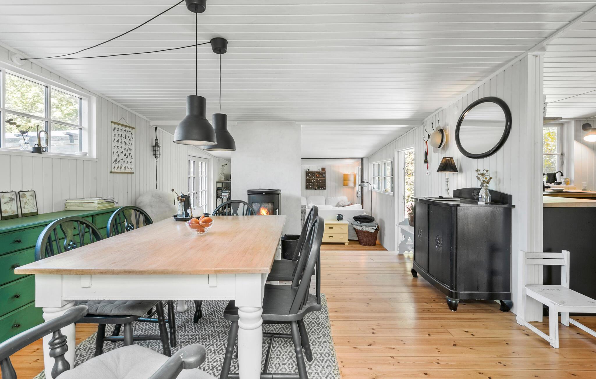 Velkommen til dette skønne hus, der ligger smukt placeret mellem Kattegat, Roskilde Fjord og Arresø og danner rammen om en herlig ferie med familien. Indretningen er flot udført med livlige farver, gode møbler og fine detaljer i udsmykningen, der gør stemningen hjemlig og gør det nemt at sænke skuldrene med det samme, I ankommer. På de lidt køligere dage kan I fyre op i brændeovnen, tage den med ro og kræse om madlavningen i det veludstyrede køkken, nyde måltiderne i udestuen, inden I hiver brætspillene frem eller smider en god film på tv'et.