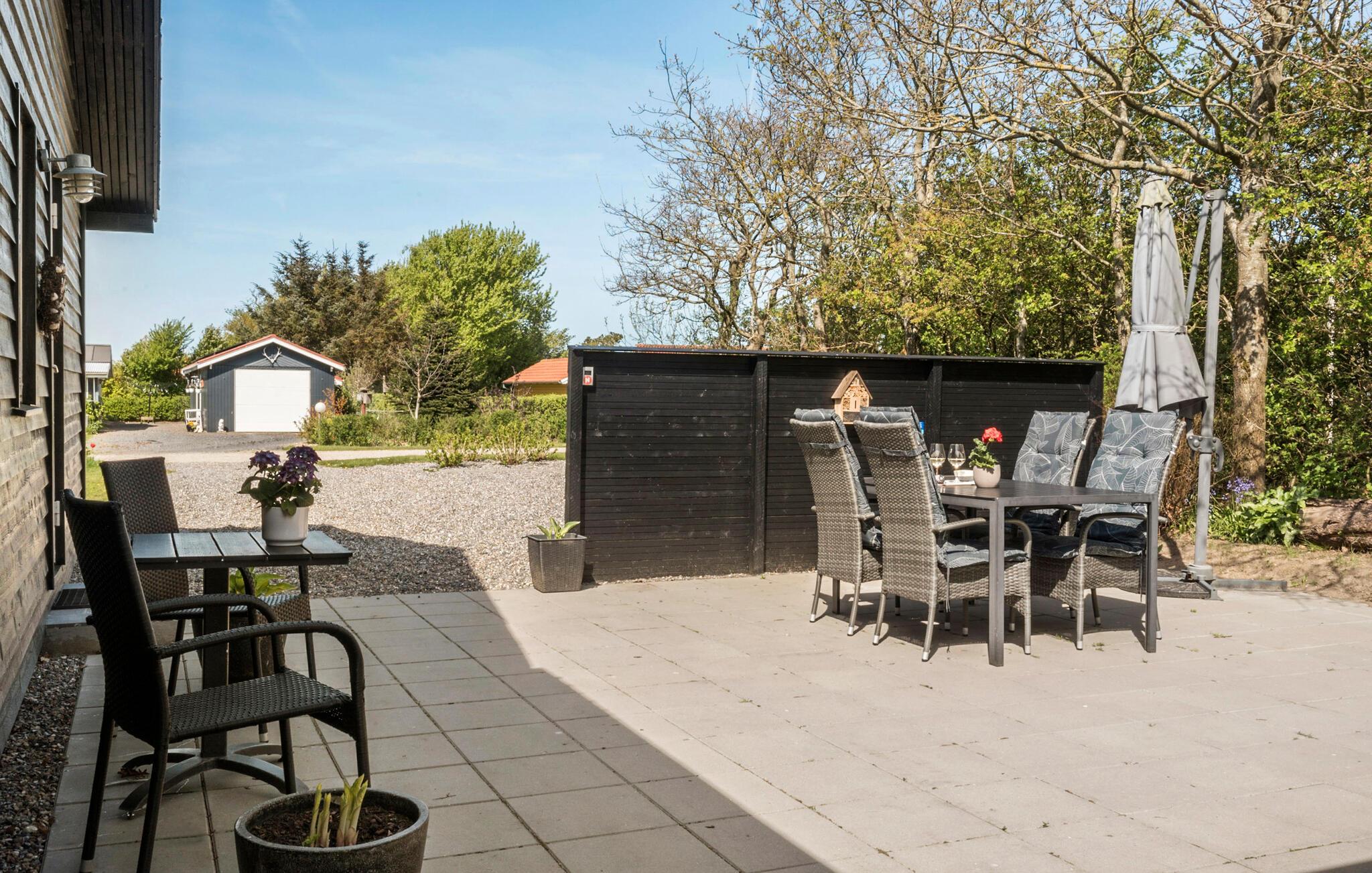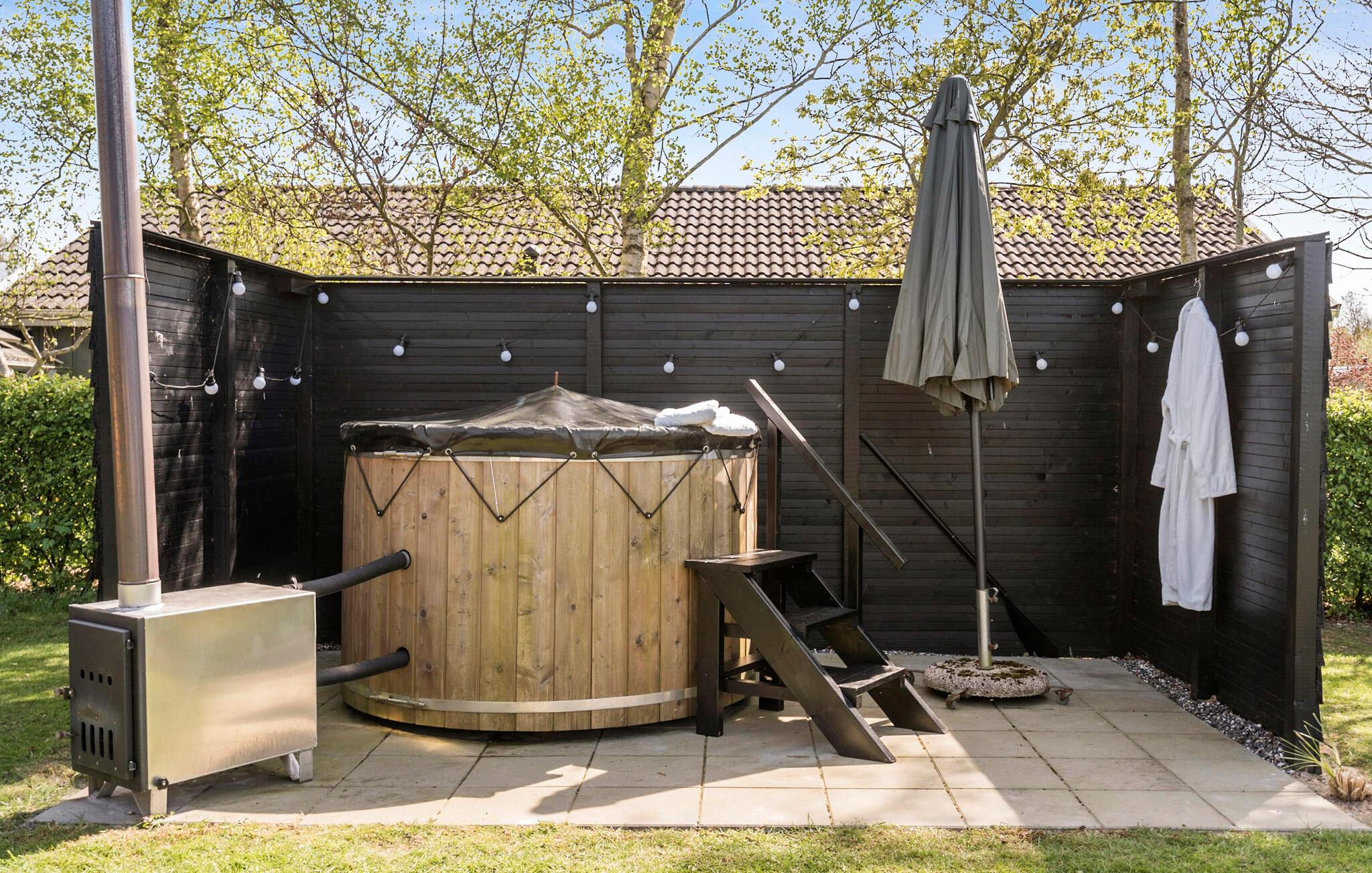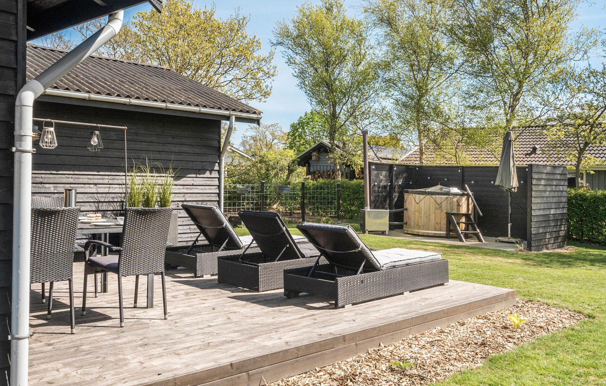 Hold en afslappende ferie i dette moderne sommerhus med wellnessfaciliteter og dejlig have.