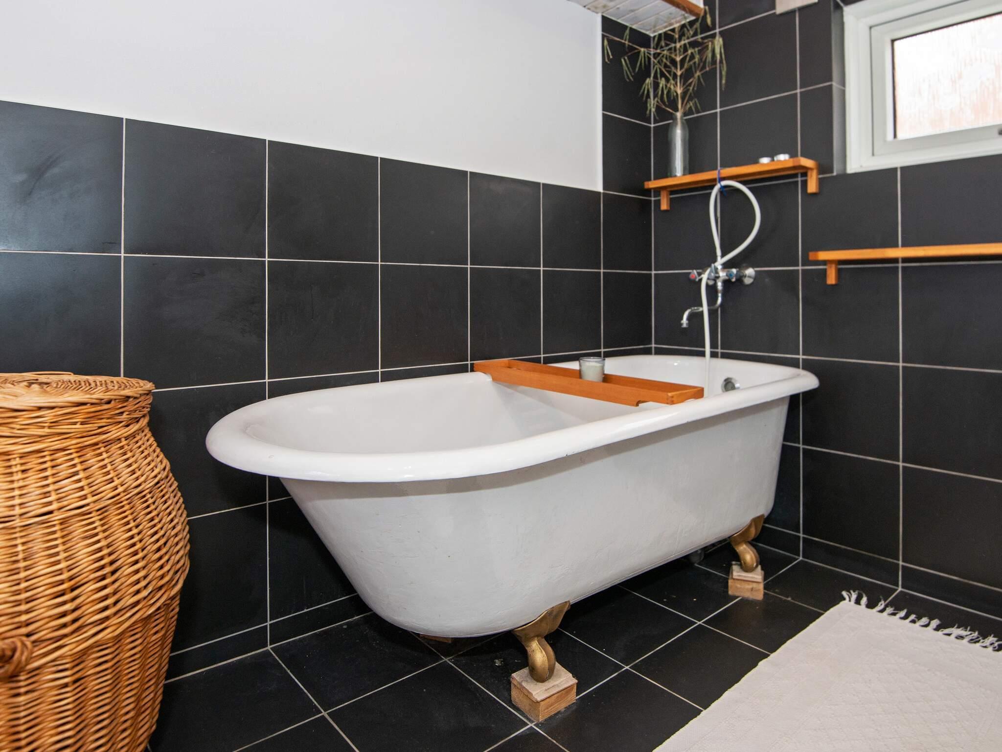 Sommerhuset er af ældre dato med rustikke trægulve. Køkken og badeværelse er af nyere dato. På badeværelset er der badekar. Huset er på hele 160 m2 på 2 etager med 2 store soverum på 1. sal og 1 i stueetagen, hvor badeværelset også er.