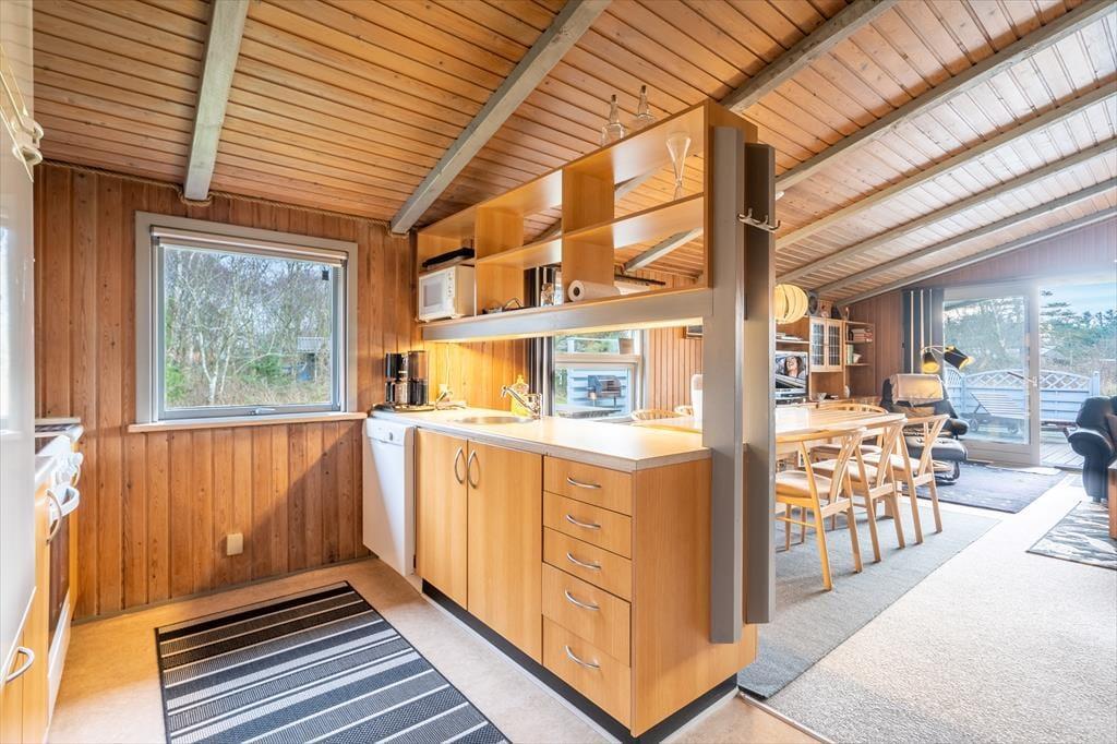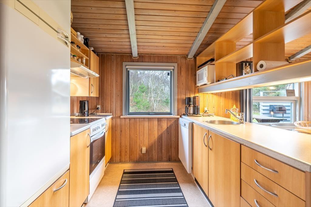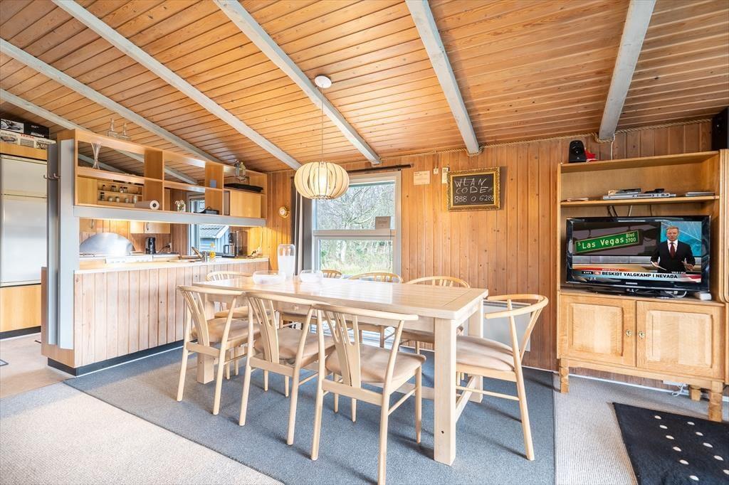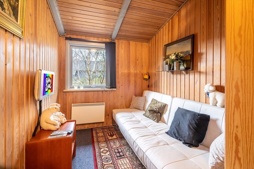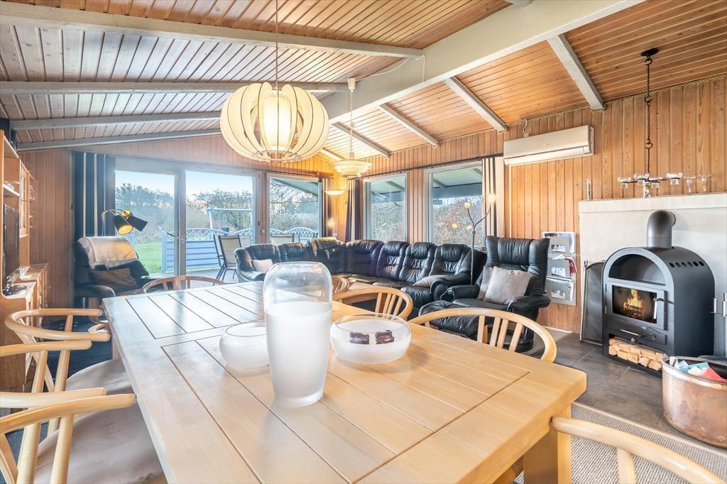 Træd indenfor i et lyst og indbydende træhus, hvor den ægte, gamle sommerhusstemning straks mærkes. Her emmer alt af ro og nærvær – fra de synlige træbjælker til den knitrende brændeovn, der samler hele familien efter en dag i den friske havluft. I stuen kan I synke ned i sofaen med et spil kort eller en varm kop kakao, mens flammerne danser bag ruden. Det åbne køkken ligger i forlængelse af stuen og gør madlavningen til en hyggelig fælles aktivitet, hvor duften af aftensmad hurtigt spreder sig i huset. Når aftenen falder på, venter de behagelige soveværelser – og i det lille anneks får I ekstra plads og privatliv, perfekt til dem, der gerne vil trække sig lidt tilbage efter en lang feriedag.