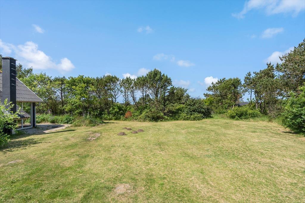 Den store, naturskønne grund er omgivet af træer og giver en skøn følelse af fred og privatliv. Her er der god plads til både leg og ro – uanset om du er barn eller voksen. Den rolige have danner en naturlig ramme om feriedagene, hvor du kan starte morgenen med en kop kaffe og fuglesang og afslutte aftenen med et afslappende dyp i det udendørs vildmarksbad, mens solen går ned.