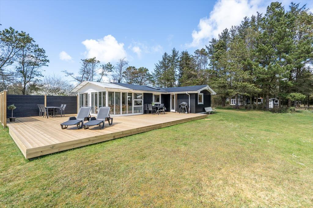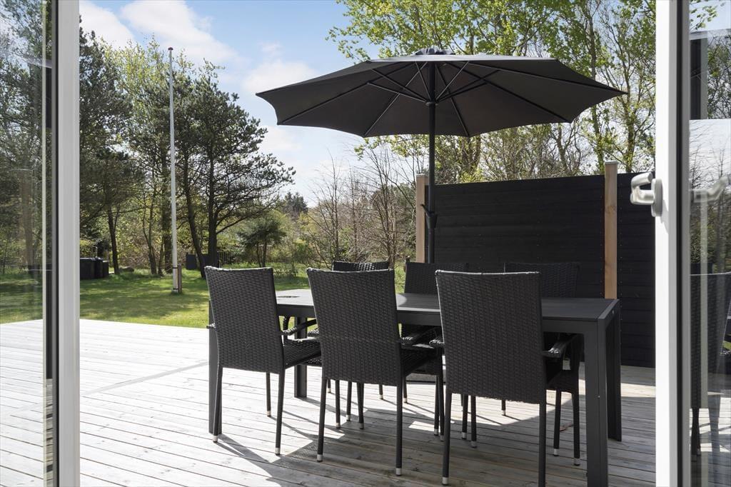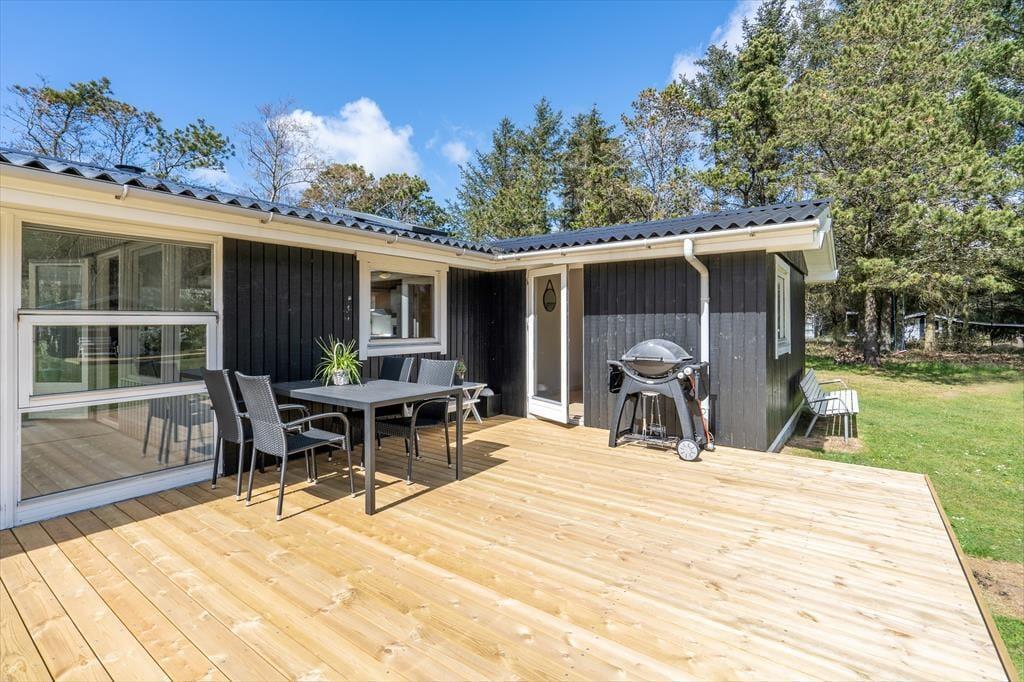 Udestuen fungerer som en god mellemstation, når I vil nyde solen på kølige årstider, og på en sommeraften kan det også være den helt rette opholdsplads. I godt vejr er det derimod husets store terrassemiljø, der er det foretrukne valg – hvis ikke I flytter driverlivet over på den anden lækre træterrasse, der ligger mellem de to annekser. Havegrunden byder på en stor græsplæne og blandet bevoksning, og med bålsted, hvor der mulighed for at grille skumfiduser til børnene og I har masser af plads at hygge jer på. Til lystfiskerne er der et udendørs fiskerensebord, og i garagen står der en 100 liters fryser til dage med en heldig fangst.