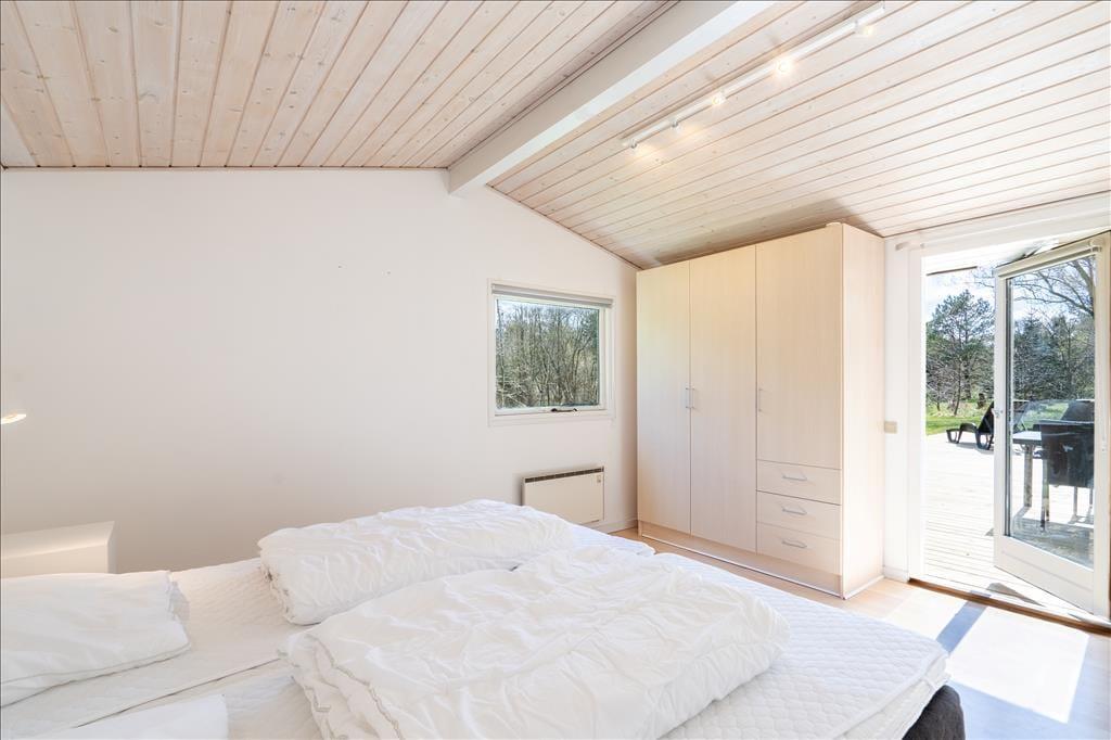 Sommerhuset har en dejligt rolig adresse på den lukkede Birkealle. Lige vest for grunden finder I en stor legeplads: Her er der sjove legeredskaber, petanquebane og fodboldmål mellem træerne, så I kan nemt få timevis til at gå. Fra Lodberg Hede kan det også anbefales at tage ud mod kysten, hvor I kan bade i Vesterhavet eller boltre jer på stranden – hvis ikke I sætter kursen mod den nærmeste fiskesø eller den lokale golfbane. Søndervig har et stort udvalg af familievenlige ferieaktiviteter samt gode indkøbsmuligheder og spisesteder.