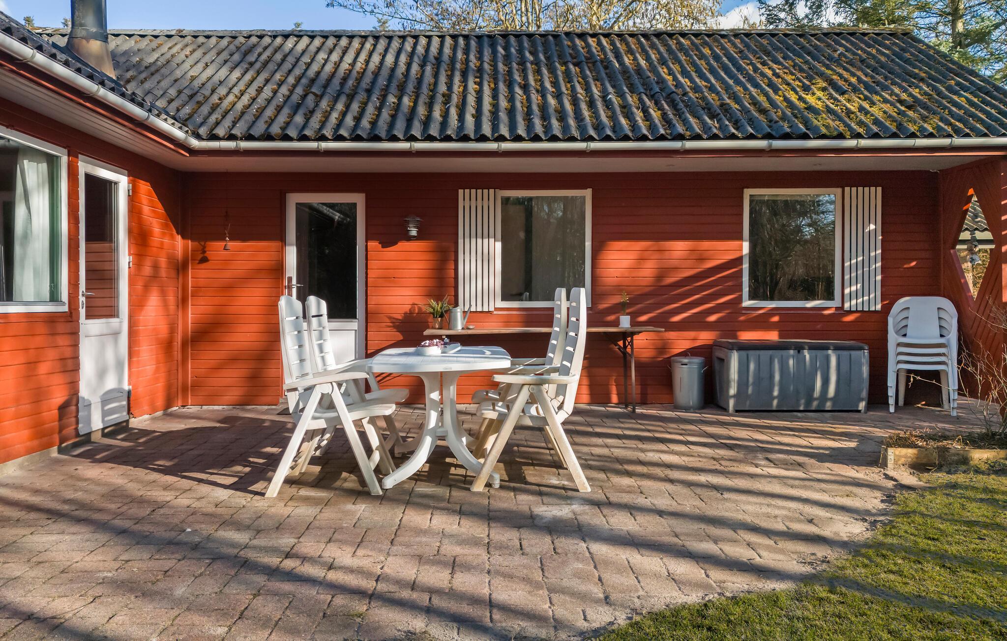 Hyggeligt feriehus nær natur og strand ved Søndervig med stor terrasse og brændeovn.