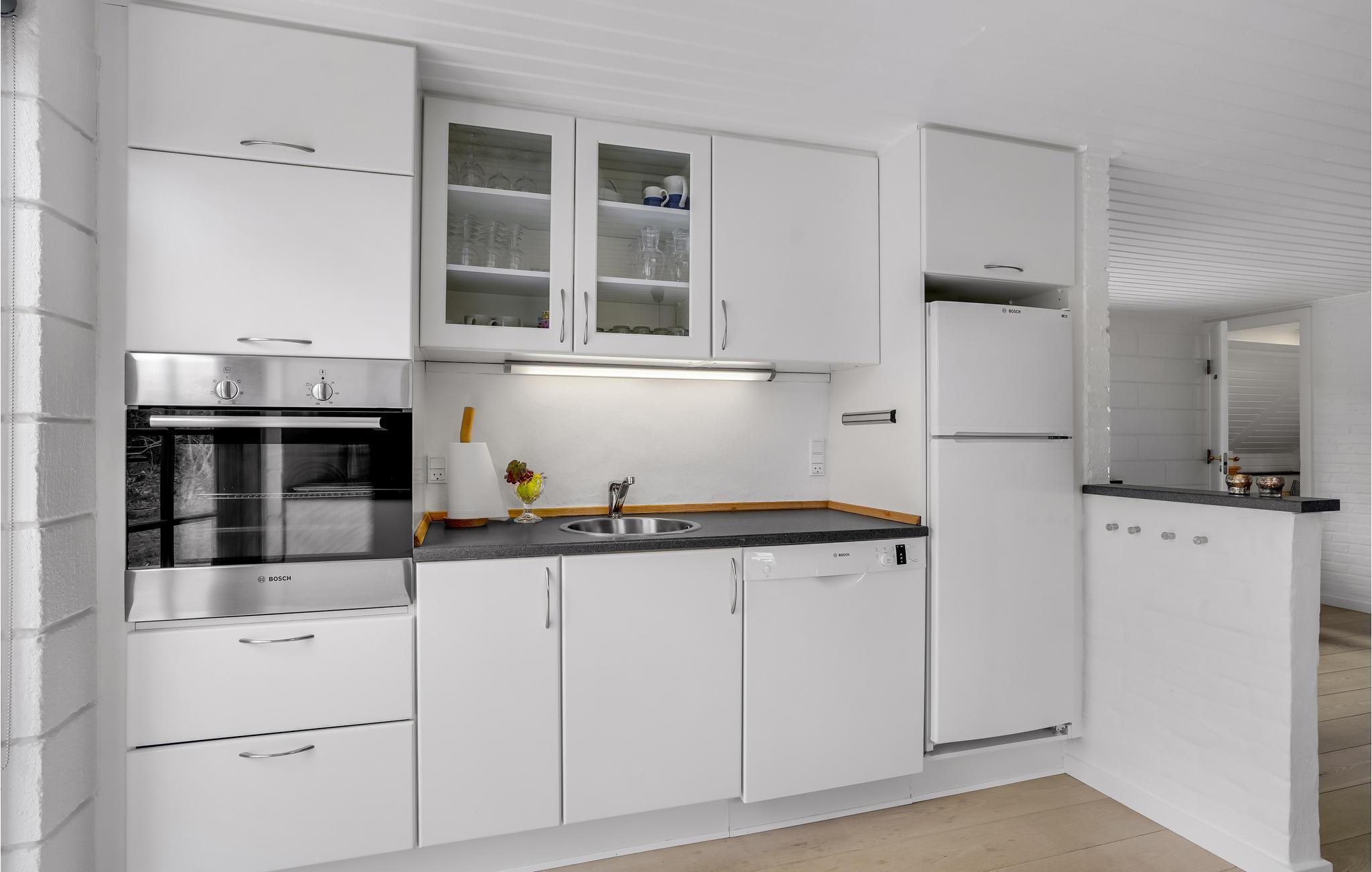 Fra køkkenet kan I træde direkte ud i haven og nyde solen på terrassen, mens fuglene kvidrer. På grunden er der masser af plads til at løbe og lege. Sommeraftenerne kalder på hyggelige timer med grill og lækre salater.