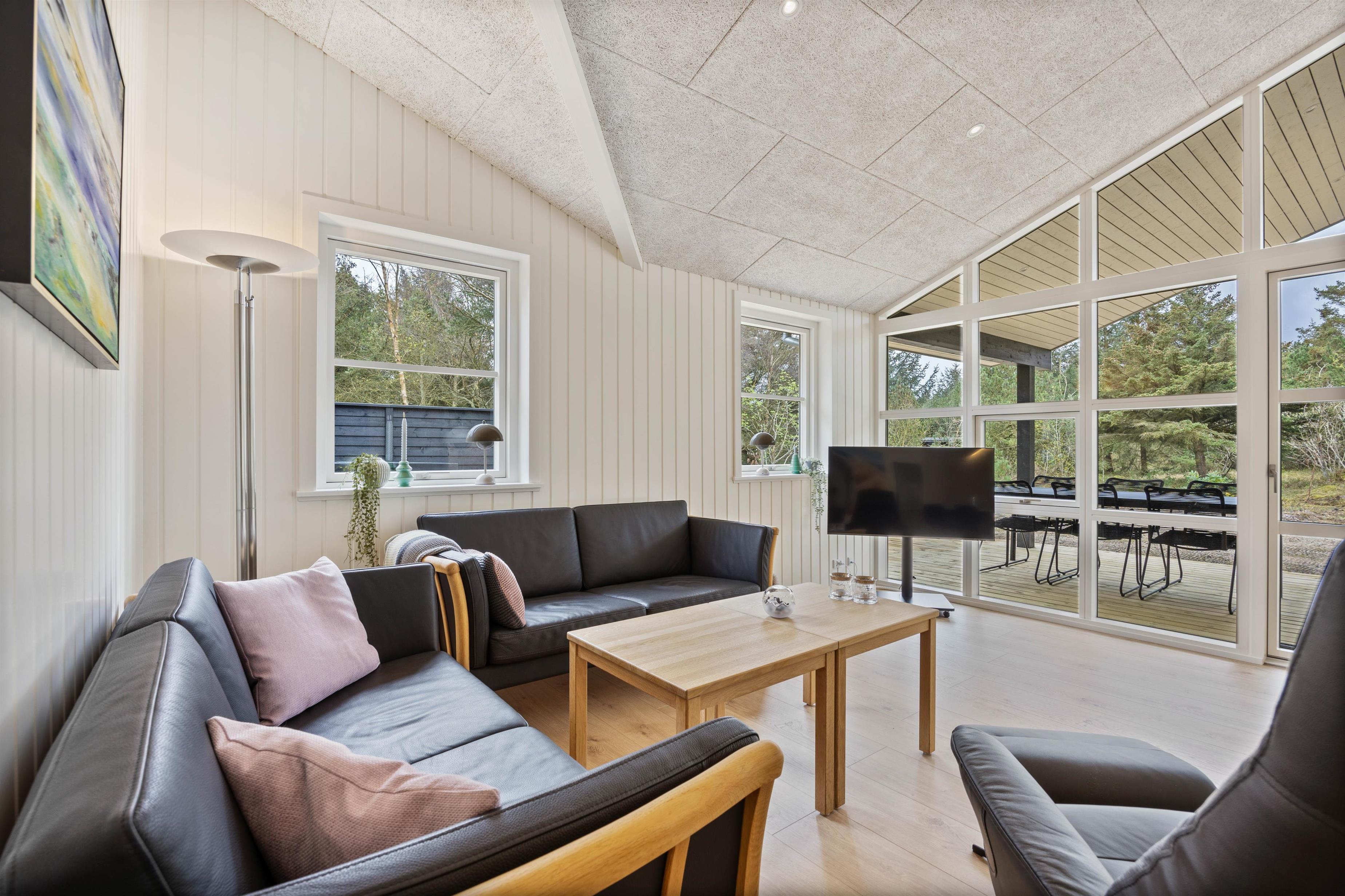 Koglevej 4 byder jer velkommen til en moderne og lækker indretning med et køkken, der er fuldt udstyret med alt det nødvendige køkkenudstyr, der skal til for, at I kan lave en masse lækker mad på ferien. Opvaskemaskinen klarer hurtigt opvasken på ferien, og der er god plads til at samles samt nyde et glas vin, imens børnene slapper af, og maden simrer. Om aftenen kan i synke ned i sofaen og kigge ud på stjernehimlen og naturen igennem de store panoramavinduer, mens brændeovnen knitrer og bidrager til ægte sommerhusstemning. Der er adgang direkte inde fra badeværelset med sauna ud til terrassen.