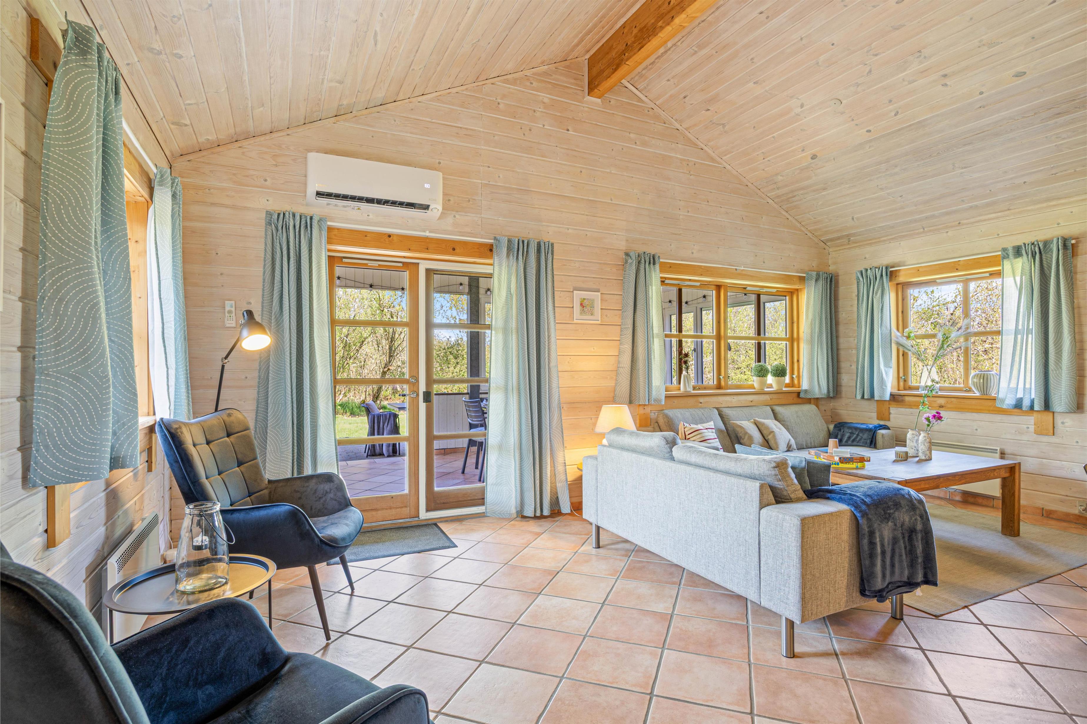 Huset er et flot og rustikt bjælkehus, som fremstår indbydende og velholdt. Der er trævægge og trælofter overalt i huset og i køkken/alrummet er der loft til kip. Dette hus er perfekt til familien, som ønsker sig en fredfyldt ferie med god mulighed for at få batterierne ladet op. Feriehuset råder over en brændeovn, hvorfra I på de lidt køligere dage har mulighed for at samles omkring brændeovnen og nyde varmen og de knitrende lyde. I dette område er der god plads mellem husene, og dette hus er placeret helt ud til et åbent landskab mod nord.