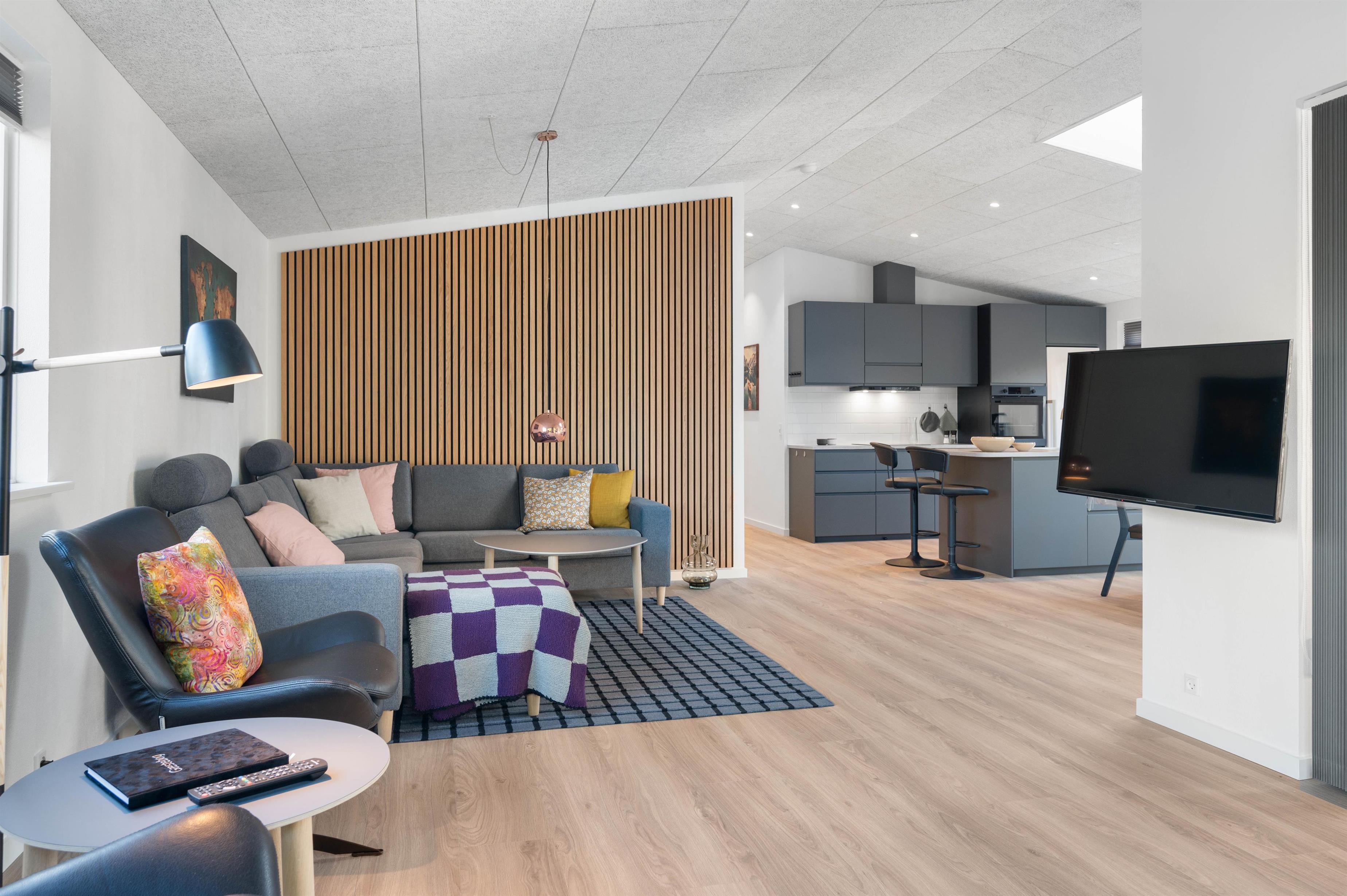 Sommerhuset råder over alle praktiske moderne faciliteter, såsom vaskemaskine, tørretumbler og opvaskemaskine, så I kan få vasket tøj under ferien. Der er desuden gratis fibernet og fladskærms-TV.