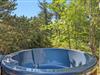 Dejlig træterrasse, stor plænegrund og et vildmarksbad